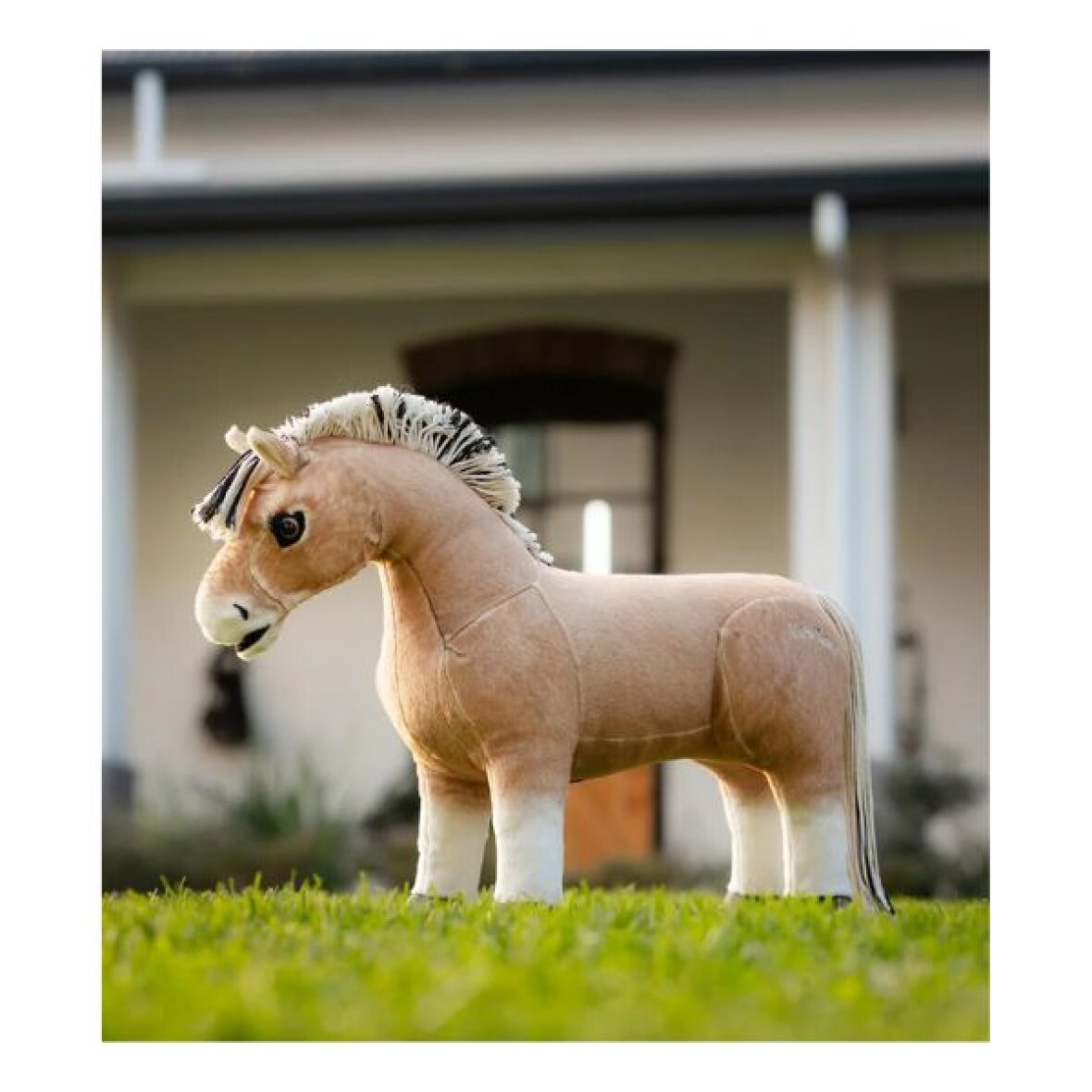 Mini toy ponyen Oskar fra LeMieux, som er en norsk fjordhest med den karakteristiske blege dunfarvede pels. Oskars pels er superblød og perfekt til at strigle og passe, og han har selvfølgelig den klassiske ålstribe langs ryggen. Den tofarvede manke står flot og rank, præcis som på en rigtig fjordhest, og halen kan flettes. Han står sikkert på alle fire ben og er samtidig fleksibel, hvilket gør ham både sjov at lege med og lærerig. Hver Oskar er håndlavet og kan derfor variere en smule i størrelse og form.