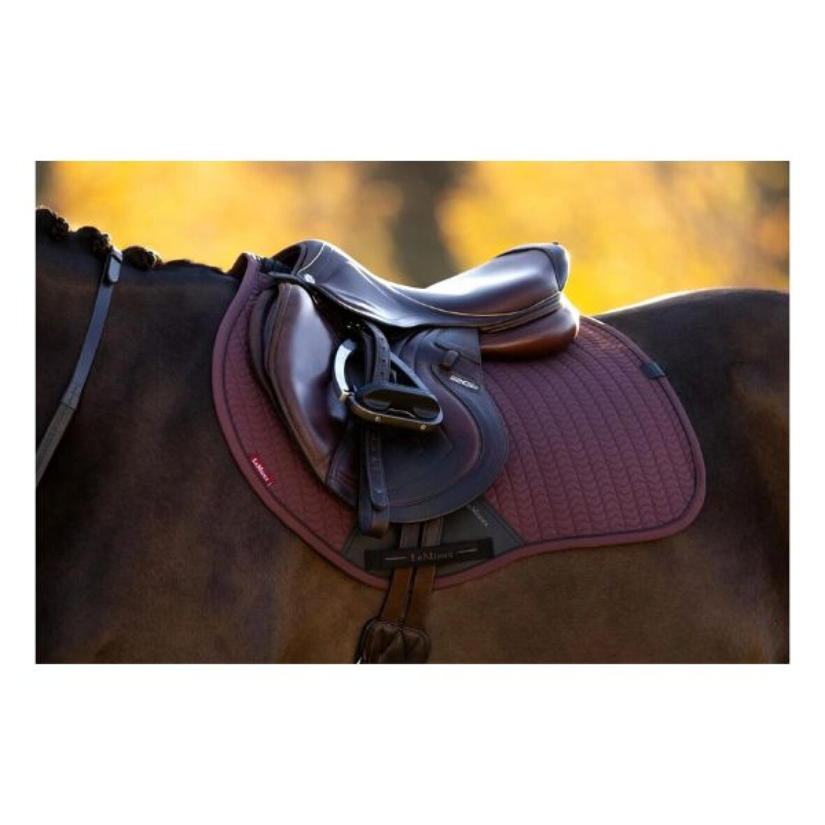 Spring underlag fra LeMieux. Dette underlag er designet med teknisk ydeevne og i softshell-stof. Den høje mankefacon reducerer tryk og forbedrer sadlens pasform. Den bløde, åndbare foring med selvkølingseffekt er vævet med kølefibre, der leder varme væk fra huden og effektivt absorberer sved. Jo varmere hesten bliver, desto mere arbejder den fugtaktiverede kølingsforing under sadlen. Underlaget er udstyret med kunstlæder ved gjordområdet for at forhindre slid. En LeMieux-mærket læderdetalje tilføjer en eksklusiv afslutning til underlaget.