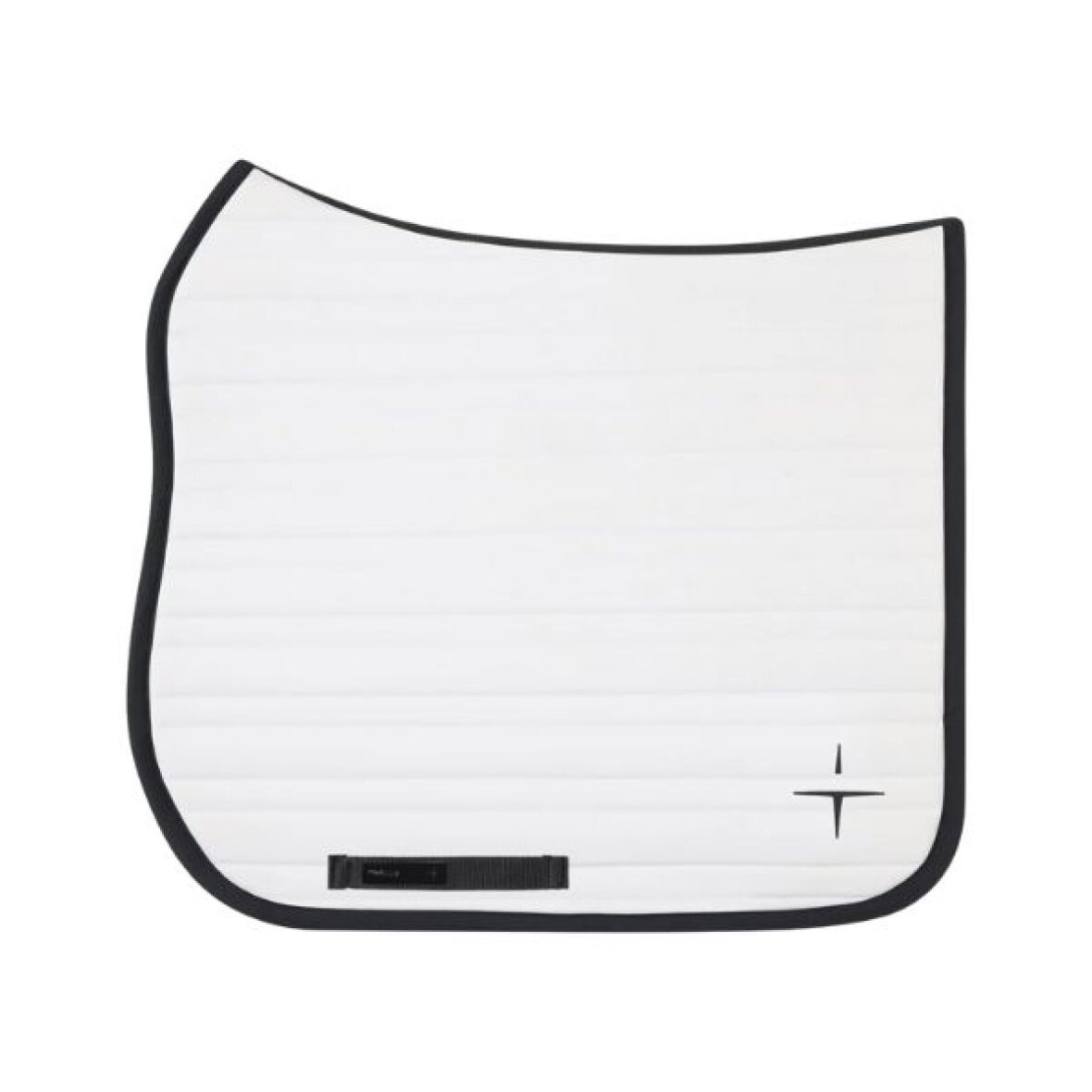 Dressur underlag fra Trolle Projects. Underlaget er fremstillet af et teknisk yder materiale, som giver både holdbarhed og et stilrent udtryk. Indvendigt har underlaget et særligt bikubemønster, der forbedrer åndbarheden og sikrer hurtig tørring - så din hest forbliver tør og komfortabel under hele rideturen. Underlaget er anatomisk formet for at sikre en optimal pasform og maksimal komfort for hesten. Som en elegant detalje har det en flot quiltning og det er det prydet med et kontrastfarvet, broderet Trolle-stjernelogo i venstre side, der tilføjer et eksklusivt touch.