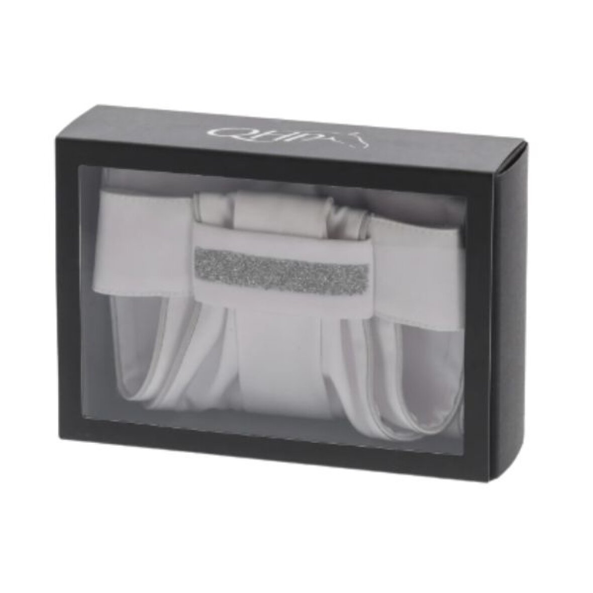 Plastron fra QHP i satin med et flot glitter bånd og et broderet 'Q' i bunden. Nem at lukke med velcro lukning.