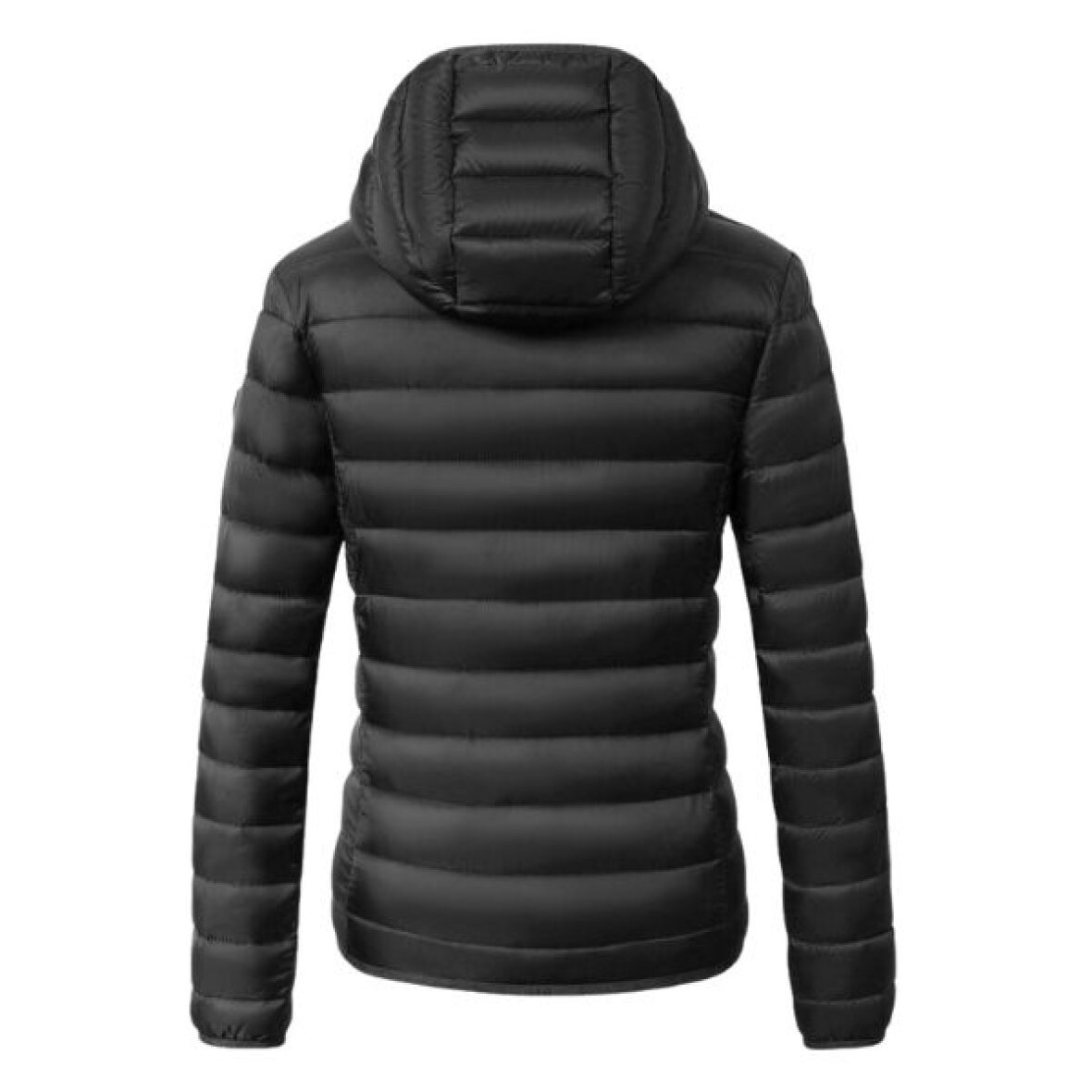 Quilted jakke fra Covalliero med let vattering i imiteret dun og et feminint, figursyet snit. Jakken har praktiske detaljer som en aftagelig hætte, to lommer med lynlås, 2-vejs lynlås foran samt elastiske manchetter og søm, der holder kulden ude.