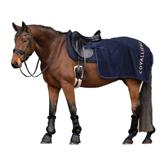 Lændedækken fra Covalliero med logo i kontrastfarve. Ideelt som ridedækken da materialet holder hestens bagpart varm under ridning. Dækkenet fastgøres nemt og sikkert med robuste velcrolukninger på begge sider, hvilket sikrer en stabil pasform - selv under ridning.