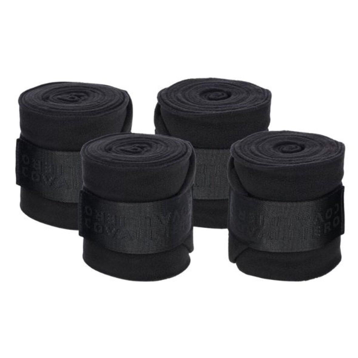 Fleece bandager fra Covalliero med logo på den brede velcro lukning. Giver god beskyttelse under ridning og er nemme at vedligeholde, da de kan vaskes i maskine. Sælges sæt af 4 stk.