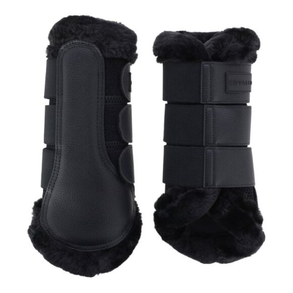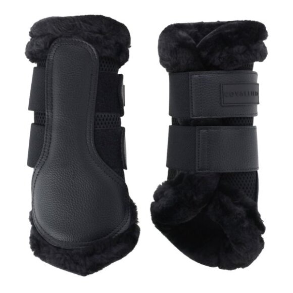 Dressur gamacher fra Covalliero med blød imiteret pelskant, som forhindre gnidning. Gamacherne er slidstærke og stødabsorberende. Det åndbare meshfor på indersiden forhindrer varmeophobning og sikrer god komfort. Den anatomisk formede pasform sikrer, at gamacherne sidder behageligt og korrekt på hestens ben.