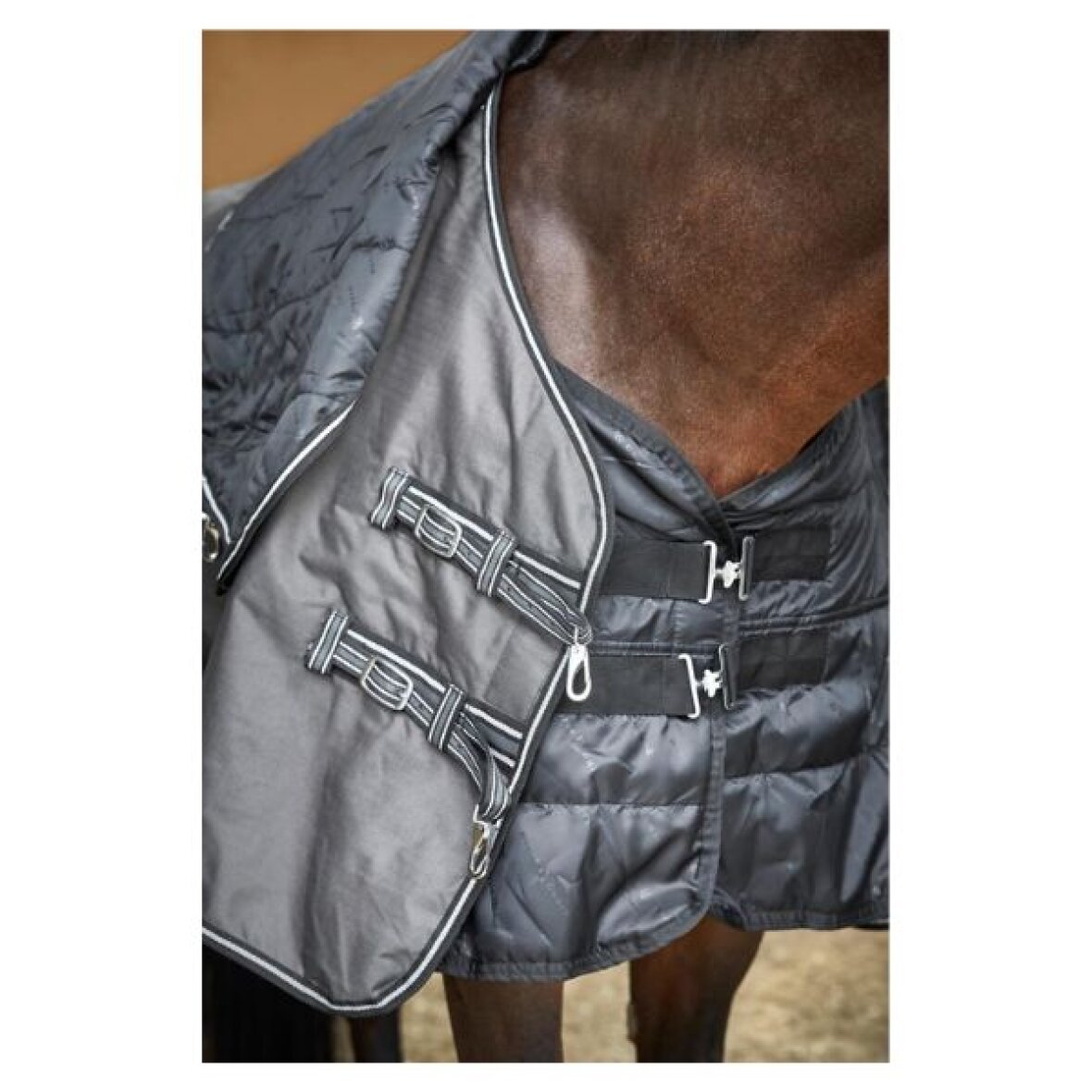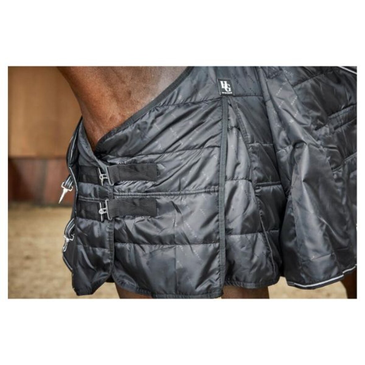 Adapting liner med logoprint med 300 g fyld. Tilpasningssystem, hvor du kan tilføje aftagelige foringer for at tilpasse dækkenet til individuelle behov. Høj slids for bedst mulig tilpasning omkring skulderen. Kan fastgøres til Adapting Turnout dækken.