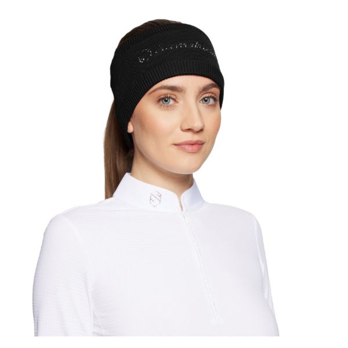 Elegant pandebånd fra Samshield med logo i Swarovski krystaller på fronten. Elastisk- og ribbet strik på kanterne og tekstureret effekt på resten af pandebåndet. Pandebåndet er komfortabelt og varmt takket være fleece lining indvendigt.