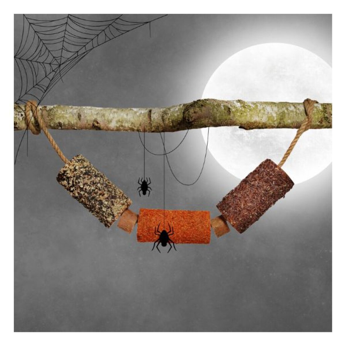 Staldlegetøj med halloween-tema fra Candy Horse. Dette træ-tygge legetøj understøtter fordøjelsen og hjælper med at reducere kedsomhed i stald. Den er lavet af 100% naturlige ingredienser - ingen kunstige farvestoffer eller konserveringsmidler.