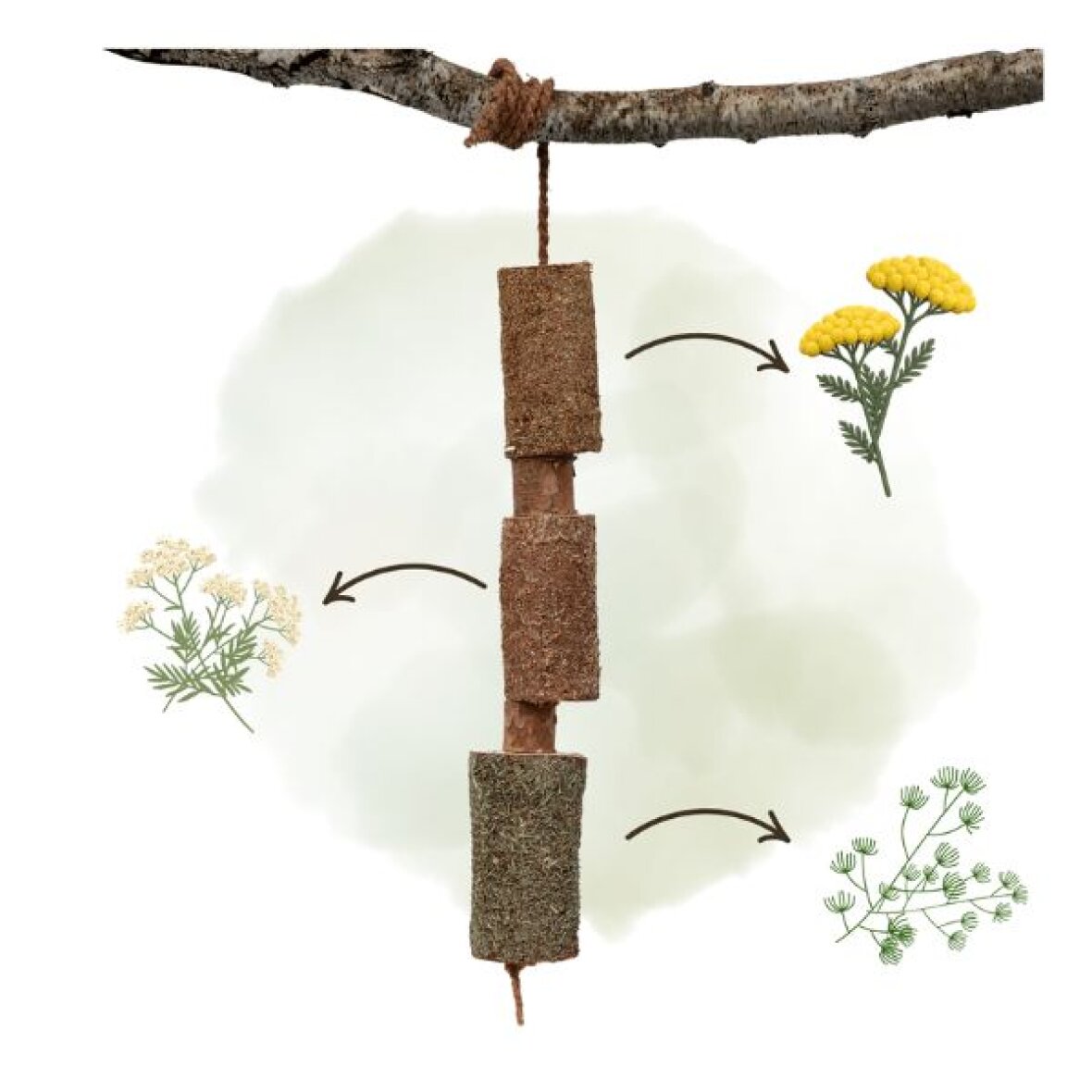 Træ tyggelegetøj fra Candy Horse som hjælper med at reducere kedsomhed i stalden. Tyggelegetøjet er lavet af ubehandlet birke- og fyrretræ, som stadig indeholder sin naturlige harpiks og kombinerer smag, duft og tekstur for en beroligende oplevelse. Beriget med urter som agerpadderok og rejnfan samt æteriske olier fra bl.a. tea tree, pebermynte og honeybush, understøtter dette legetøj både afspænding, luftveje og hudens heling. De naturlige ingredienser har også insektfrastødende og antiinflammatoriske egenskaber. Uden tilsat sukker, kunstige stoffer eller konservering – kun rene, økologiske ingredienser.