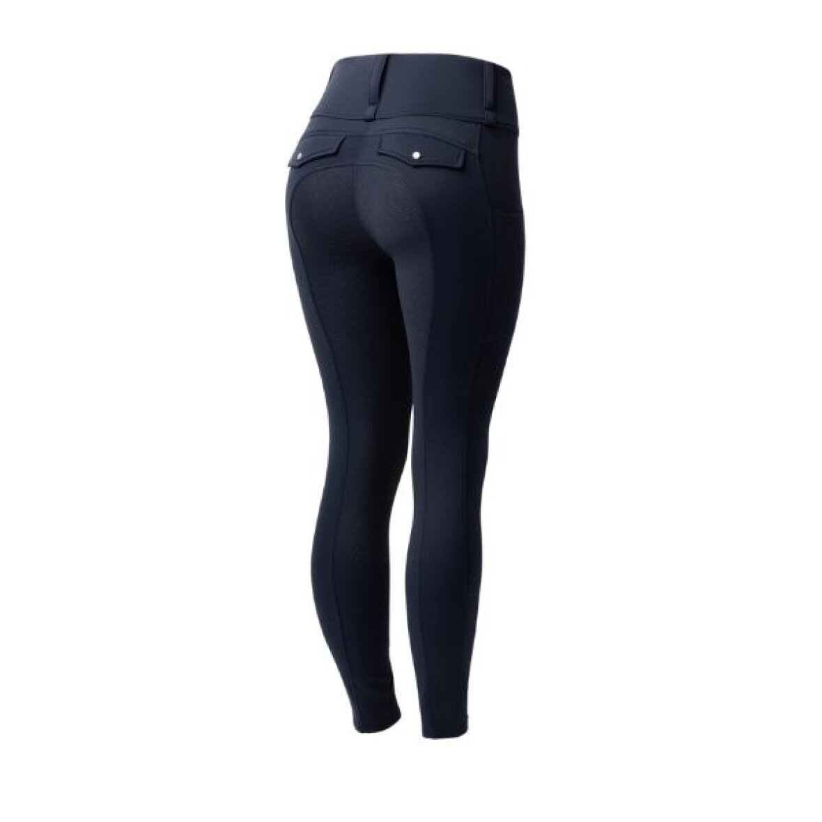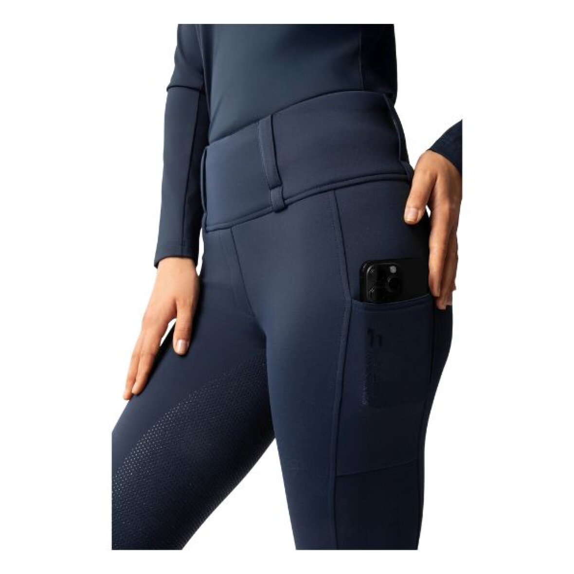 Disse thermo ridetights fra Horze holder dig varm og komfortabel på kolde dage. Det isolerende thermo-stof med blød fleece inderside giver en behagelig varme, mens materialets åndbare og strækbare egenskaber sikrer maksimal bevægelsesfrihed og komfort i sadlen. Ridetightsene har en flatterende pasform med høj talje, der giver god støtte og en elegant silhuet. Fuldgrip sæde med silikonetryk sikrer et stabilt greb i sadlen. Praktiske detaljer som en diskret telefonlomme på låret og dekorative, falske lommer bagpå fuldender det stilrene look.