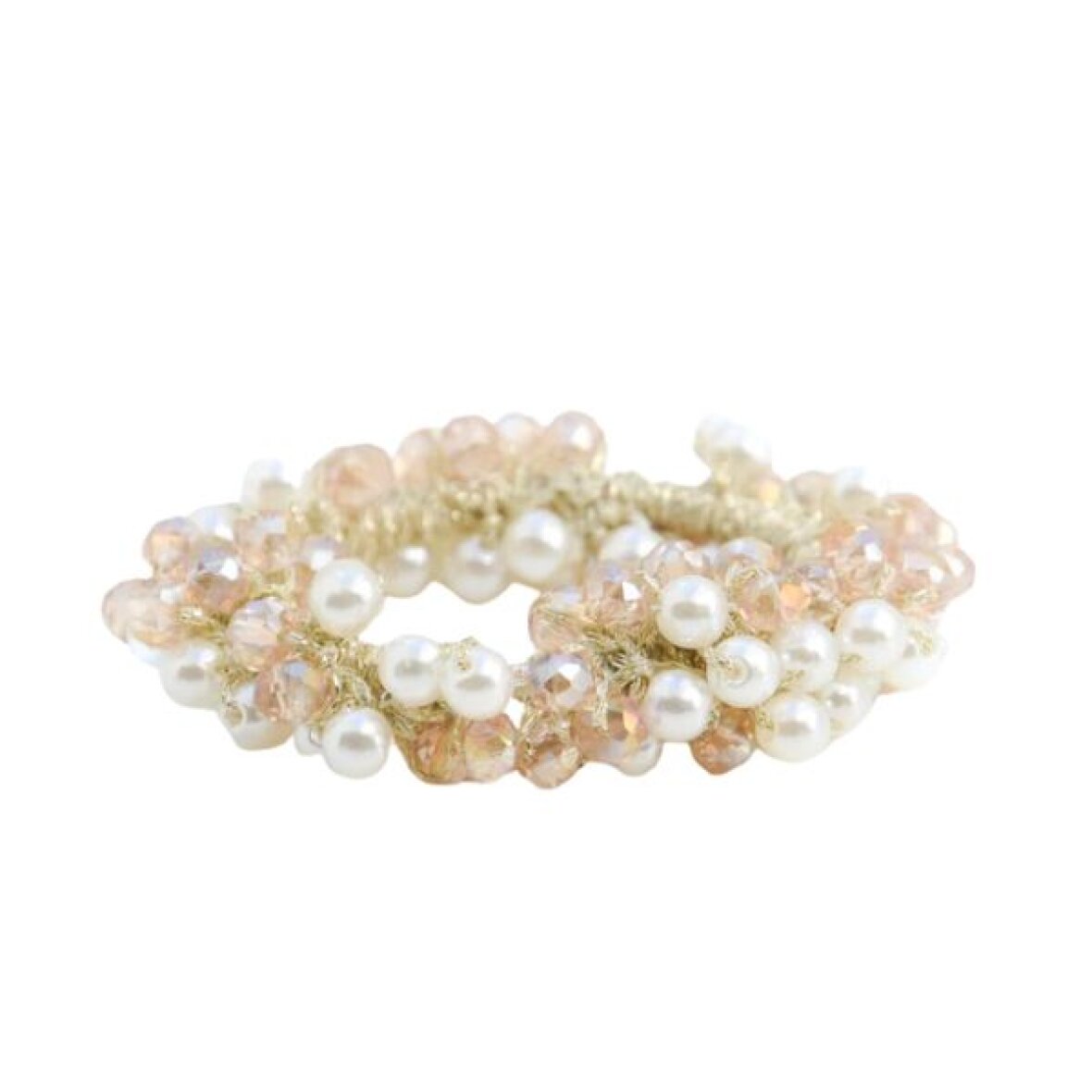 Angelo hårpynten fra Bellinoxx. Hårpynten består af et yderst strækbart elastik med imitationsperler -og krystaller påsat med glimmer tråde. Angelo kan med fordel kombineres med flere andre styles fra BelliNoxx.