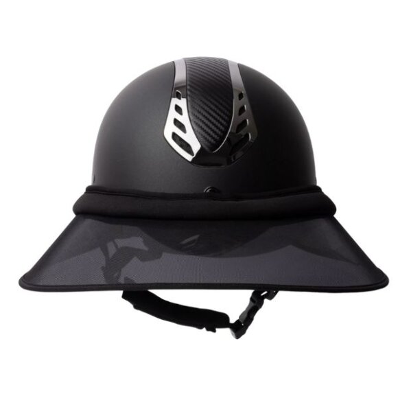 Smart solskærm til ridehjelmen fra Horze, der giver ekstra beskyttelse fra solen. Den passer til forskellige ridehjelme. Med en justerbar rem bagpå, som sikrer en tilpasset pasform. Klips i to størrelser medfølger for at forhindre at solskærmen blæser af i vinden.