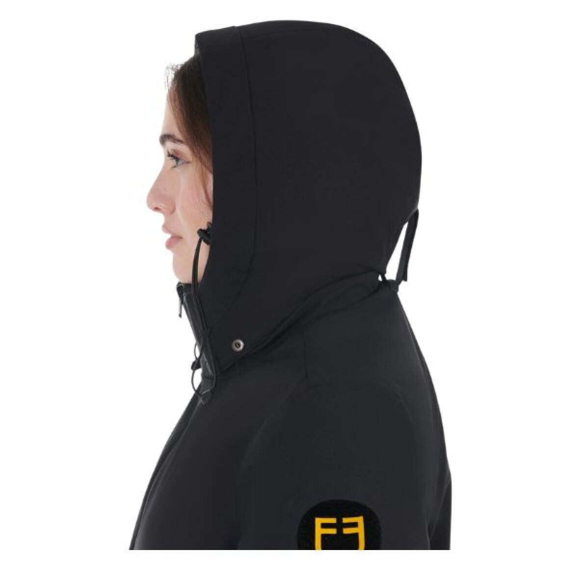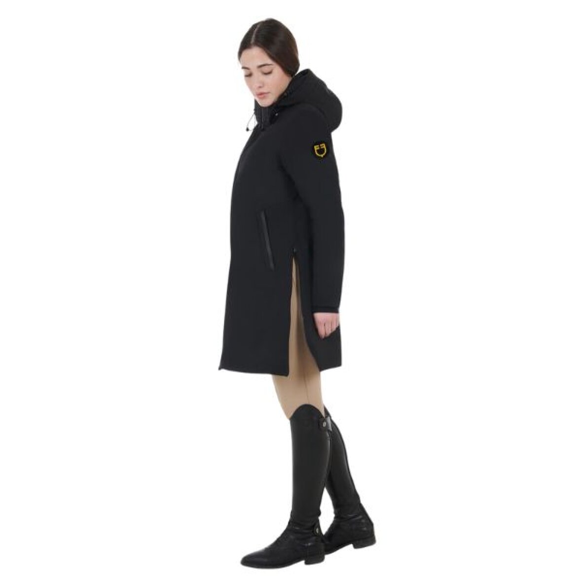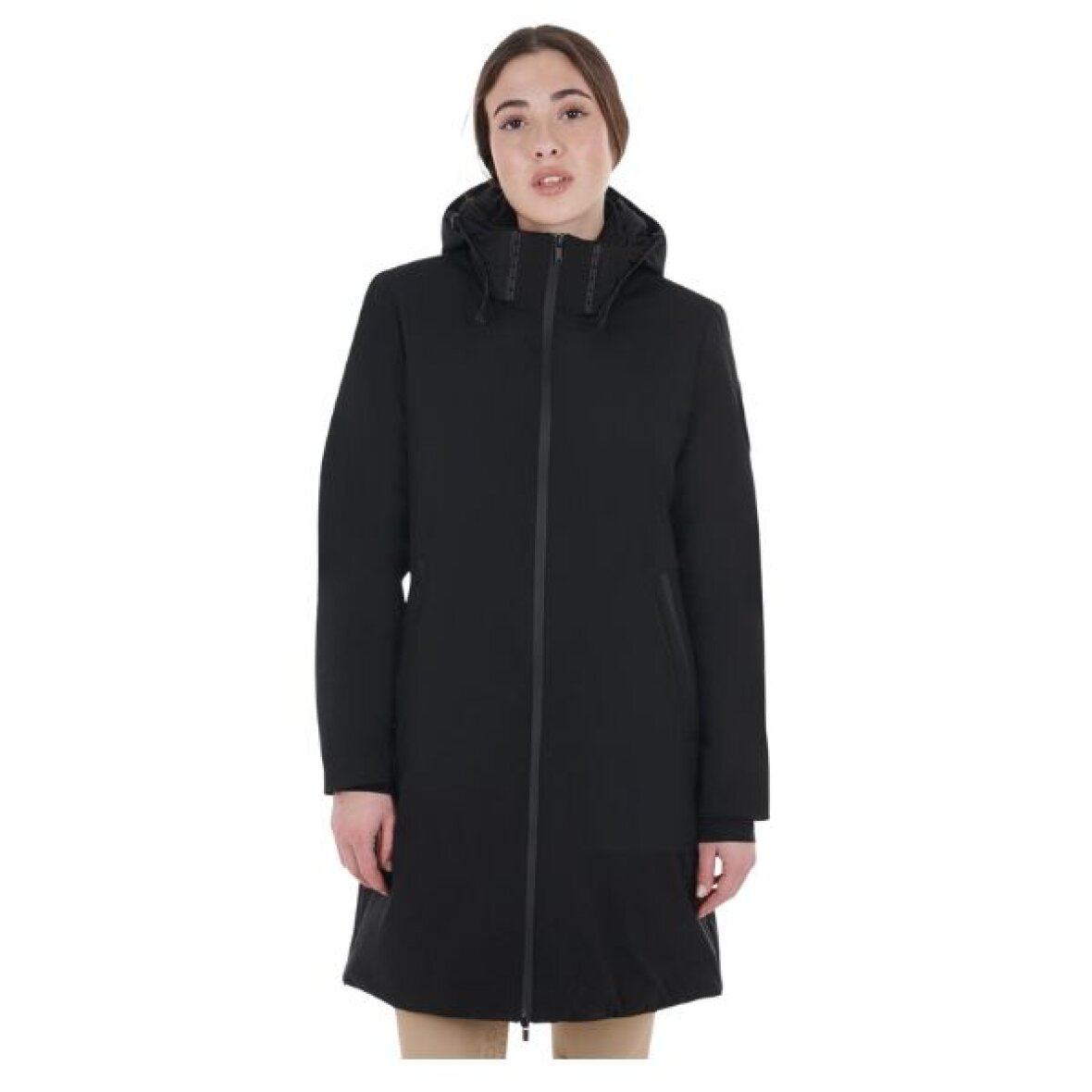 Elegant dun jakke fra Equestro fremstillet i åndbart- og antibakterielt materiale, der hjælper med at regulere kropstemperaturen. Jakken har termisk isolering, der beskytter mod kulde, samtidig med at den er vindtæt og vandafvisende, så man forbliver varm og tør i al slags vejr. Den justerbare hætte med snøre og den vindbeskyttende, tapede lynlås sikrer optimal komfort. Jakken har store, skjulte sidelommer, der giver praktisk opbevaring. To slidser giver god bevægelsesfrihed under ridning. Jakken fuldendes af det ikoniske Equestro-logo.