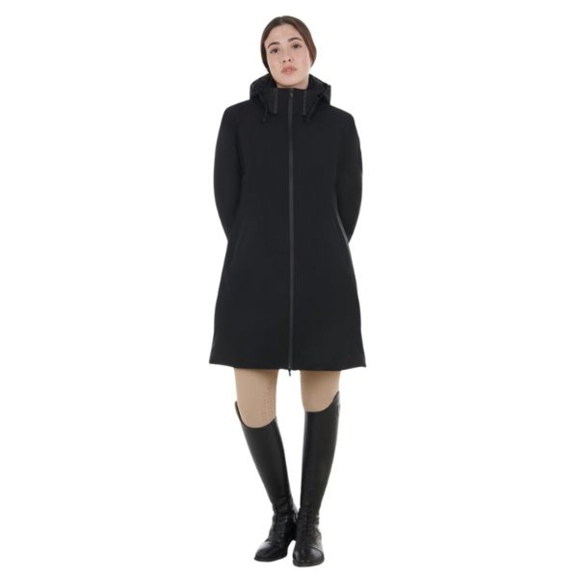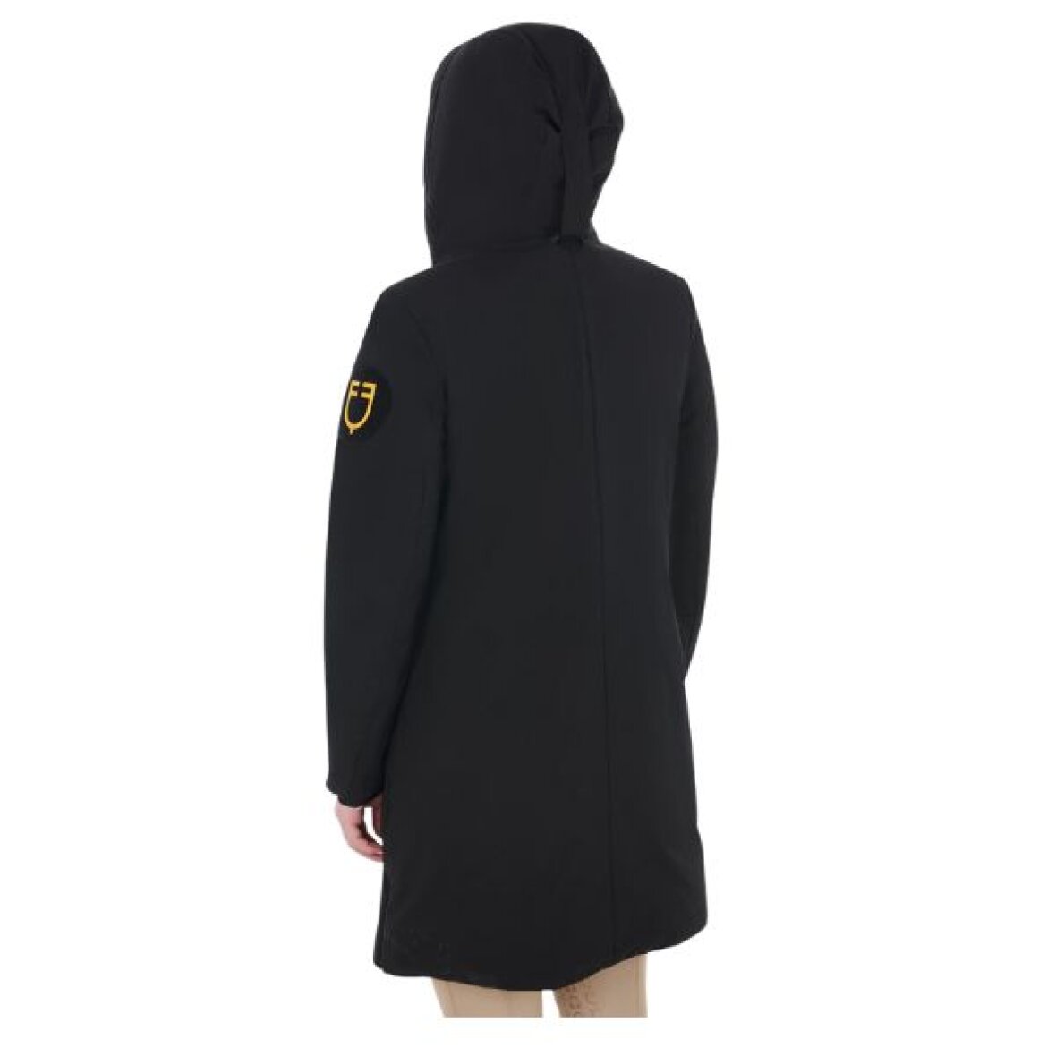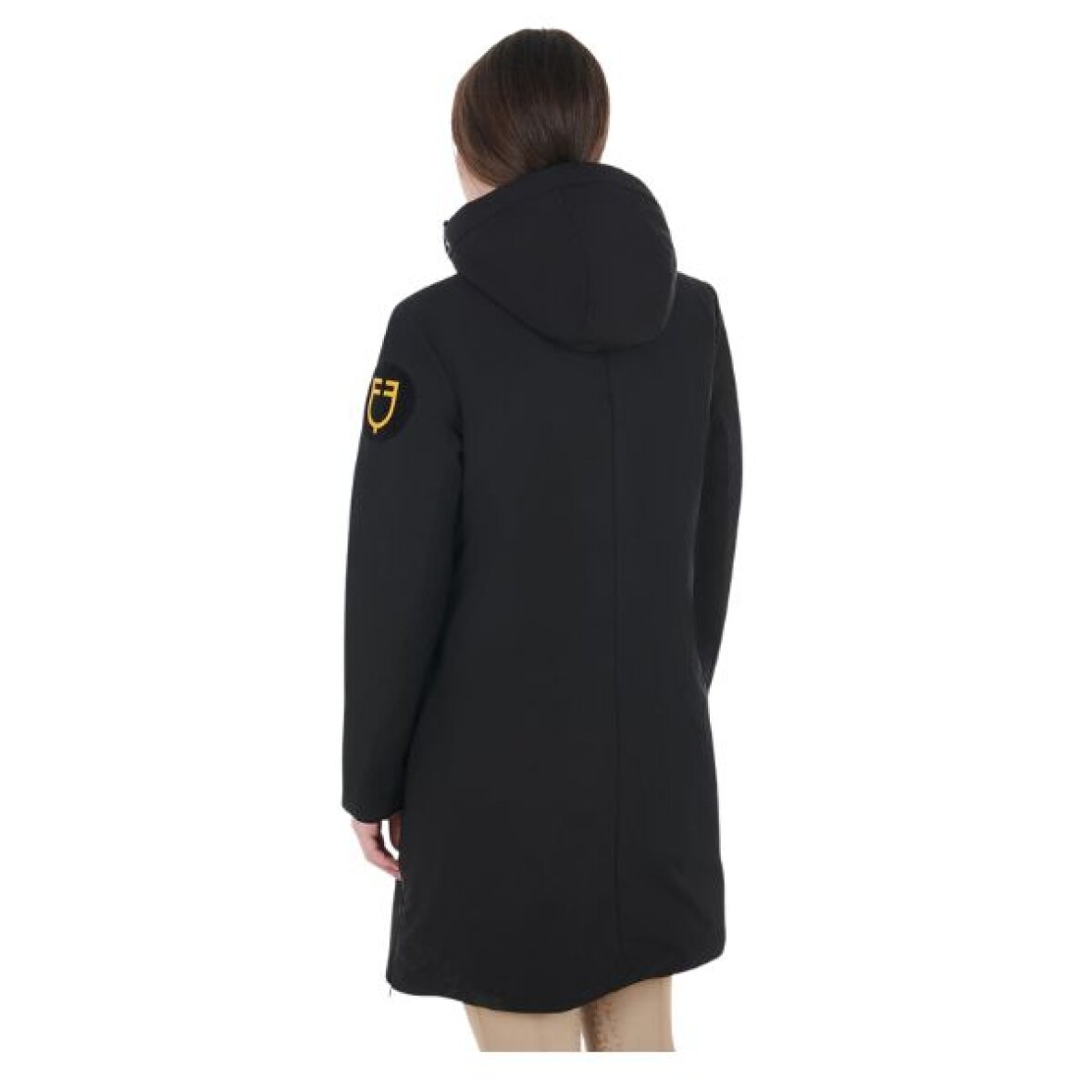 Elegant dun jakke fra Equestro fremstillet i åndbart- og antibakterielt materiale, der hjælper med at regulere kropstemperaturen. Jakken har termisk isolering, der beskytter mod kulde, samtidig med at den er vindtæt og vandafvisende, så man forbliver varm og tør i al slags vejr. Den justerbare hætte med snøre og den vindbeskyttende, tapede lynlås sikrer optimal komfort. Jakken har store, skjulte sidelommer, der giver praktisk opbevaring. To slidser giver god bevægelsesfrihed under ridning. Jakken fuldendes af det ikoniske Equestro-logo.