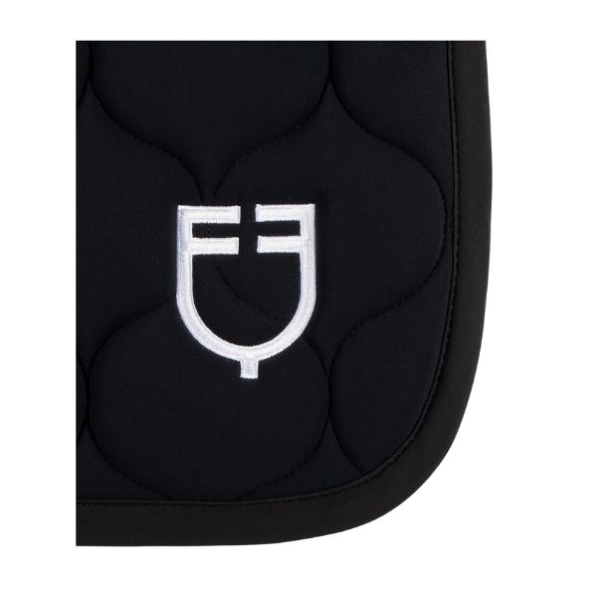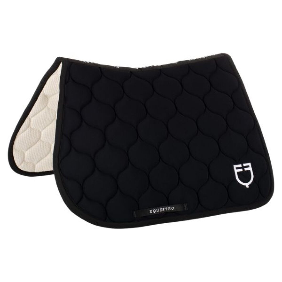 Elegant spring underlag fra Equestro. Fremstillet i innovativt, teknisk materiale som er hurtigttørrende og åndbart. Underlaget har fremragende stødabsorbering og er anatomisk formet, som gør at underlaget ikke giver tryk eller friktion . Underlaget afsluttes med den flotte quiltning samt et broderet logo på siden.