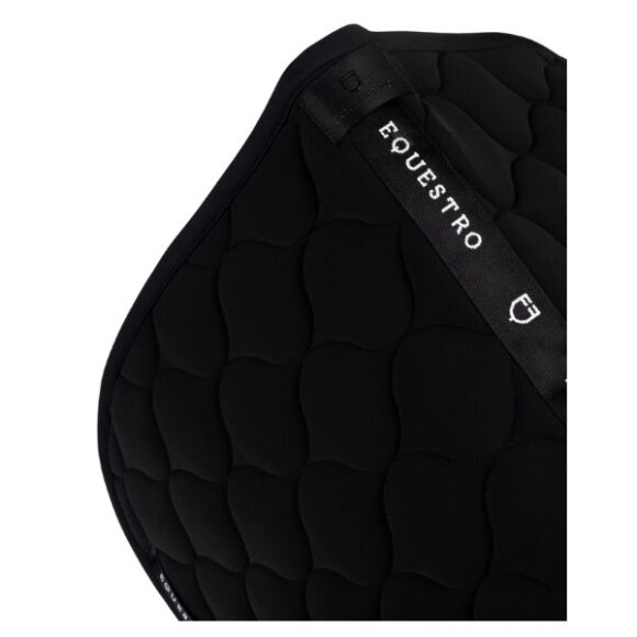 Elegant dressur underlag fra Equestro. Fremstillet i innovativt, teknisk materiale som er hurtigttørrende og åndbart. Underlaget har fremragende stødabsorbering og er anatomisk formet, som gør at underlaget ikke giver tryk eller friktion. Underlaget afsluttes med den flotte quiltning samt et broderet logo på siden.