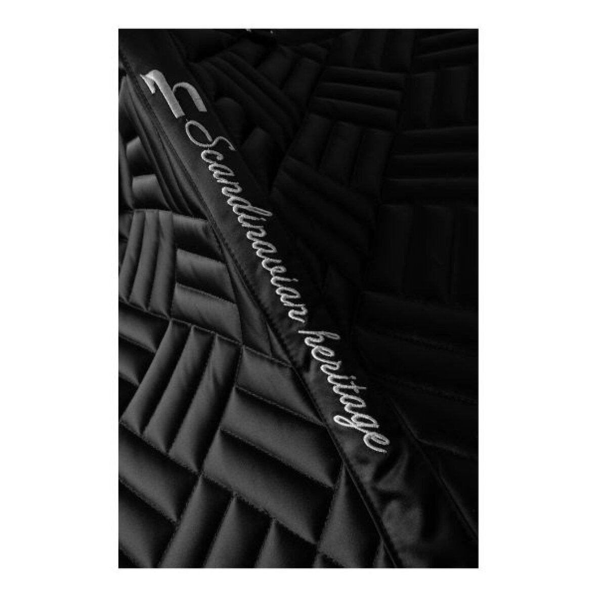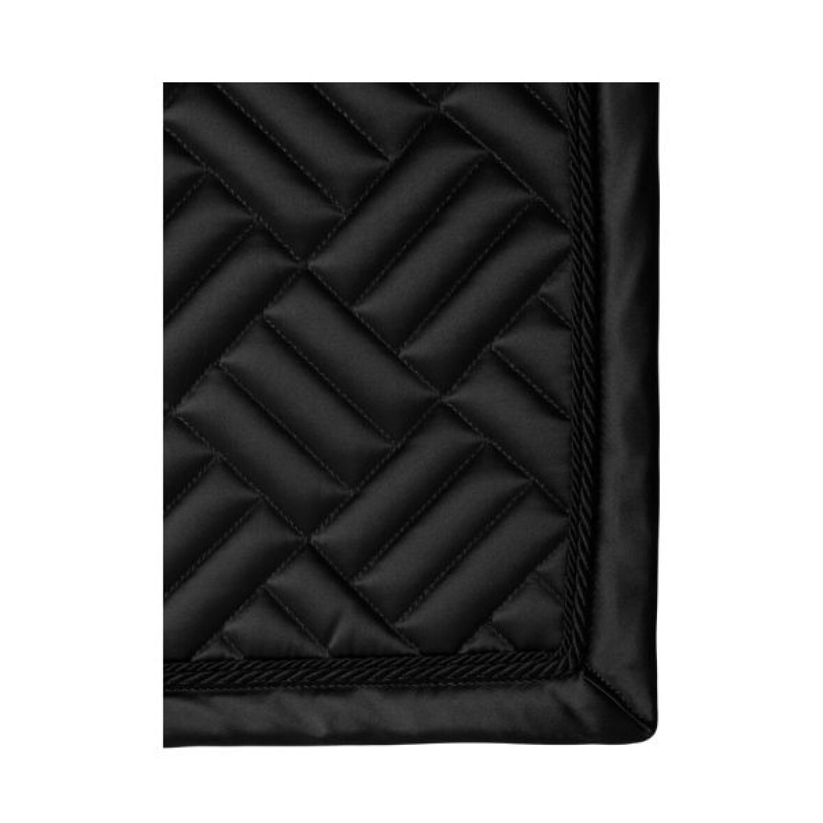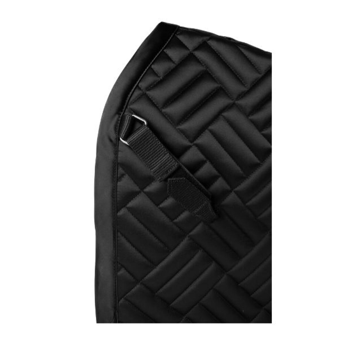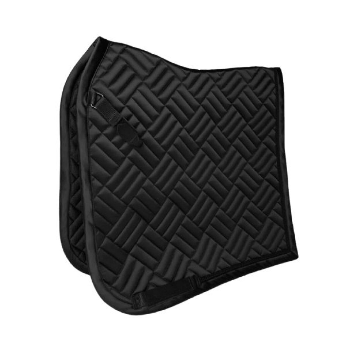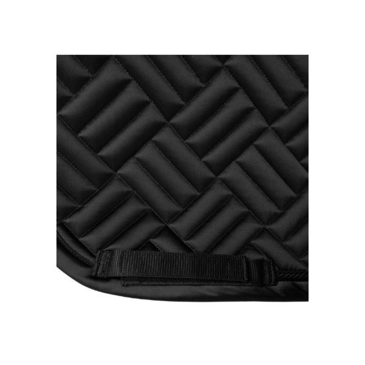 Elegant dressur underlag fra Horze med åndbare og hurtigtørrende egenskaber. Den nye, kvadratiske quiltning giver et flot udseende samtidig med at det sikrer en jævn trykfordeling. Underlaget har en aftagelig, lang frontgjordstrop og en justerbar nederste gjordstrop, som gør det nemt at tilpasse pasformen individuelt. Den anatomiske rygform reducerer trykket på rygsøjlen og giver hesten maksimal bevægelsesfrihed, mens den bløde polstring sørger for ekstra komfort under ridning. Et elegant broderet Horze-logo langs rygsøjlen tilføjer et eksklusivt præg, og det dobbelte kantbånd fuldender looket.