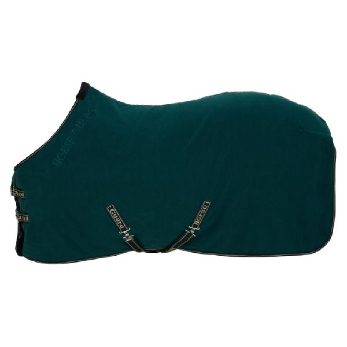 Flot fleecetæppe med teddyfoer fra HorseGuard. Dette fleecedækken er fremstillet i et åndbart, let og fugtabsorberende fleecemateriale med en blød, anti-pilling overflade, der holder sig pænt over tid. Det er ideelt til brug under transport, i stalden, efter træning, efter bad eller som cooler. Dækkenet har en glat foring ved bringen og en blød fleecekrave ved manken, som reducerer tryk og gnidning. Det lukkes foran med justerbare dobbeltspænder, har krydsgjorde under maven samt en halesnor for en stabil pasform. Et stort, tone-i-tone logo-broderi på skulderen og et elegant, snoet kantbånd giver dækkenet et luksuriøst og stilrent udtryk.