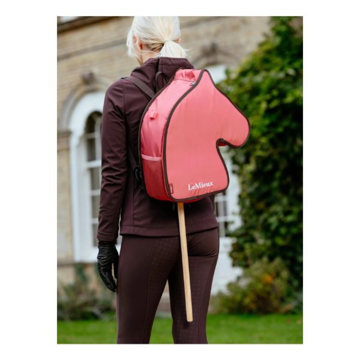 Smart rygsæk fra LeMieux til at bære din kæphest. Der er en lille lynlåsåbning i bunden af tasken, hvor stangen kan stikkes igennem. Eller, hvis du vil bære den på en mere praktisk måde, er der en sidelomme og en velcrorem til at fastgøre aftagelige stænger. Den stilrene kantafslutning og de justerbare skulderstropper gør denne taske til det perfekte tilbehør for kæpheste entusiaster.