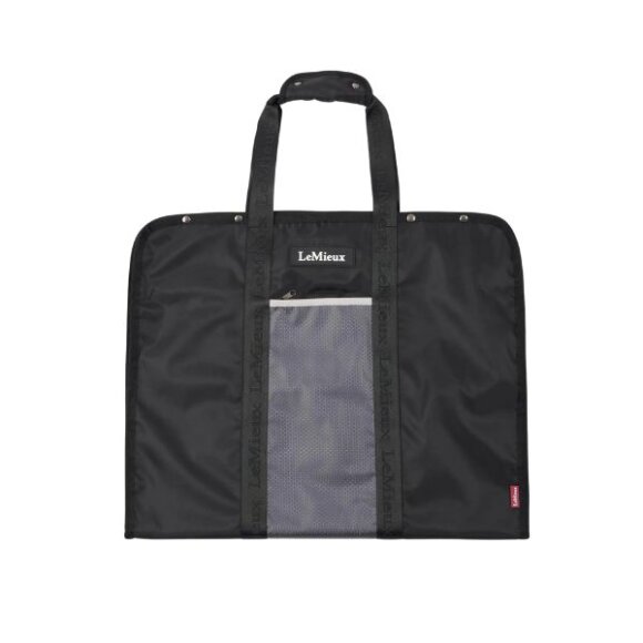 Denne stævne jakke pose fra LeMieux holder din stævnejakke fri for krøl. Posen er let og nem at bære med håndtag. Der er robuste trykknapper, så du sikkert kan folde din jakke på midten for nem transport samt en praktisk krog til at hænge posen op. Flere praktiske indvendige og udvendige lommer holder alt dit tilbehør sikkert.