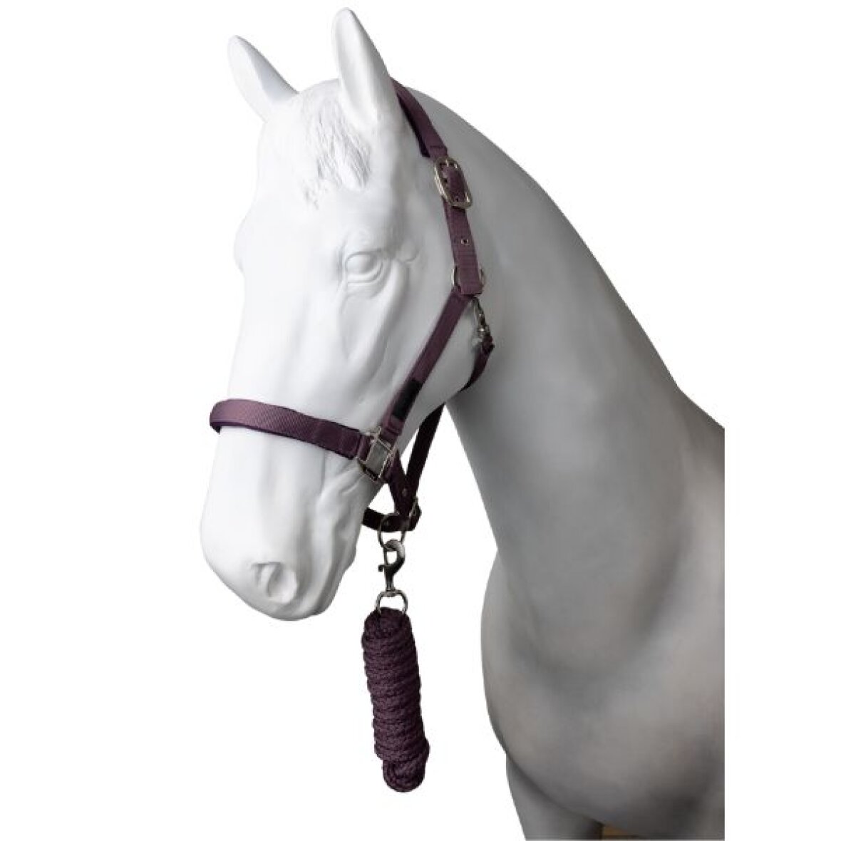 Grime med matchende træktov fra Horze. Grimen er justerbar to steder for at sikre den optimale pasform. Neopren ved næse- og nakkestykket for ekstra komfort.