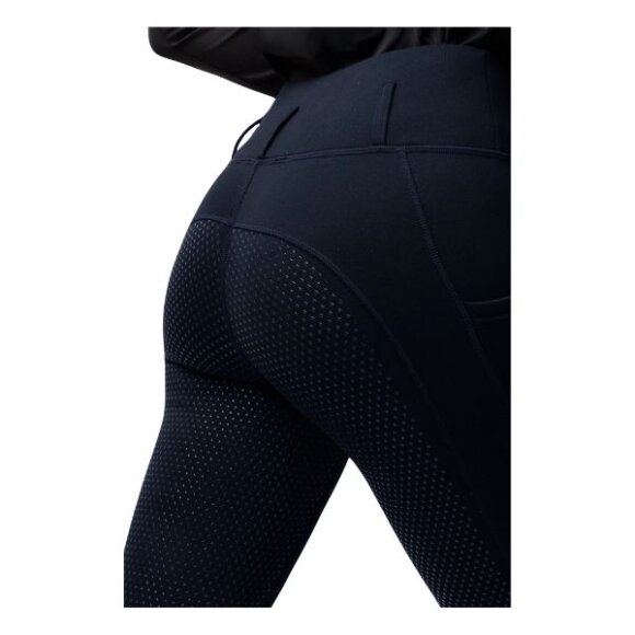 Vinter ridetights fra Horze med fuldgrip. Den brede linning med elastikbånd øverst giver en stabil og behagelig pasform, mens en justerbar elastisk tape i taljen gør det nemt at tilpasse bukserne individuelt. De praktiske lårlommer giver plads til mobiltelefon eller småting, du ønsker at have ved hånden.
