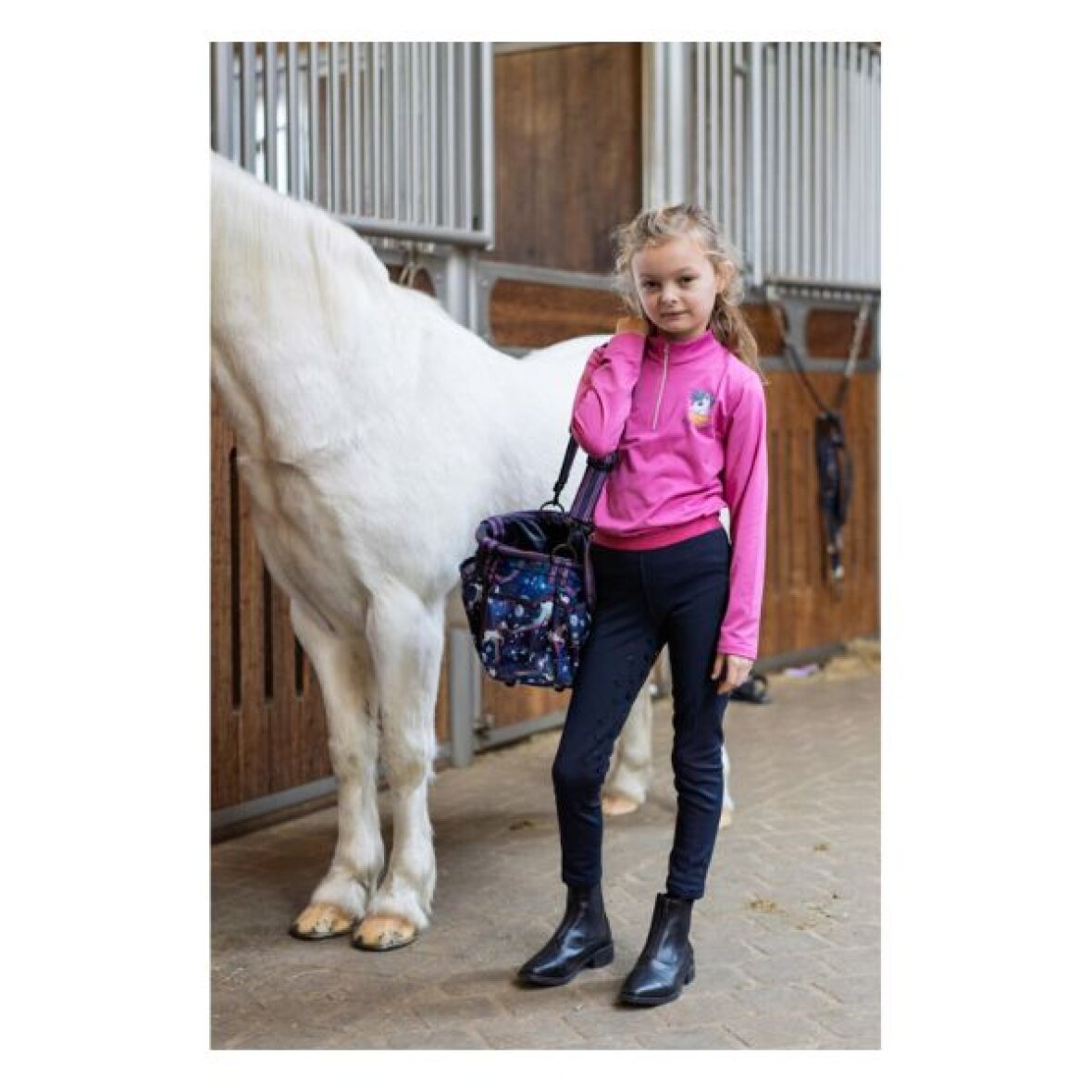 Blød strigletaske fra Equipage med flerfarvet enhjørningedesign og rund bund, som kan modstå daglig brug og slidtage. Strigletasken har et stort indvendigt rum, seks udvendige lommer og stofhætte med snoretræk. Strigletasken har også vævede håndtag og matchende justerbar skulderrem samt et monokromt logobadge i stigbøjlegummi.
