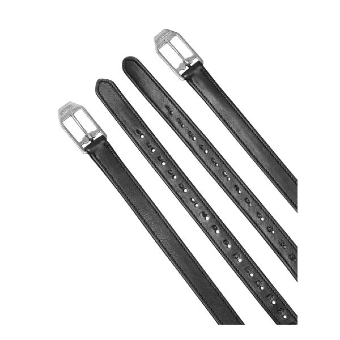Læder stigremme fra LeMieux. Fremstillet af blødt olieret læder med spænder i rustfrit stål, er stigremmene designet til at være en behagelig følelse under ben og lår. Den indre kerne af nylon forhindrer udstrækning og ujævnheder, hvilket gør, at disse remme holder formen længere.