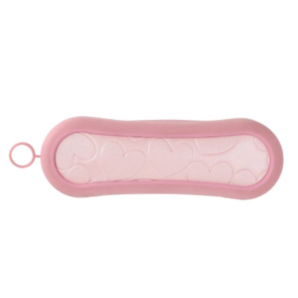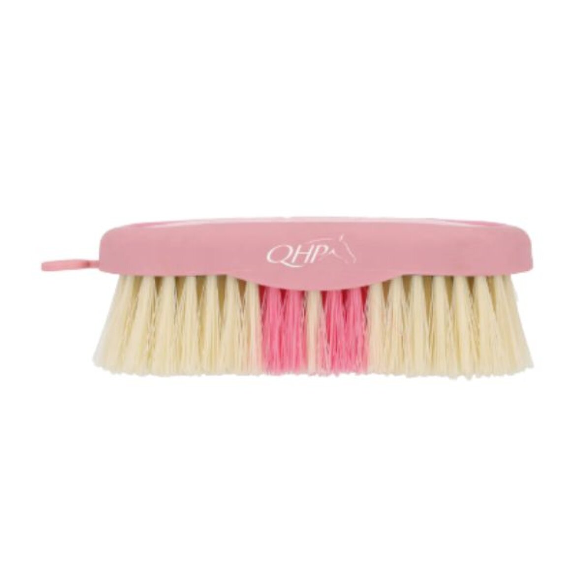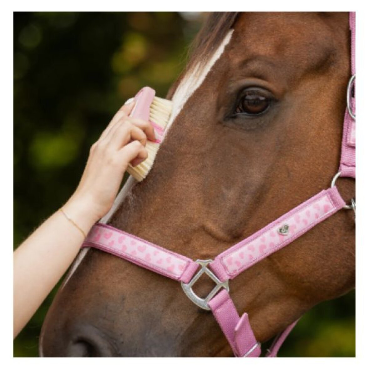Blød hovedbørste fra QHP. Striglen har hjerteprint ovenpå og lyserøde børster formet som et hjerte.