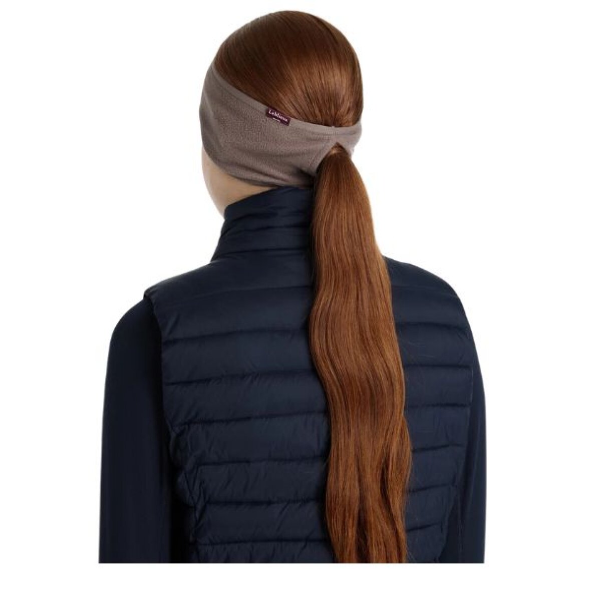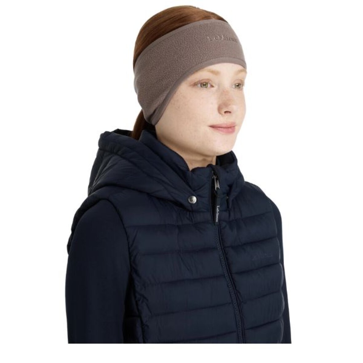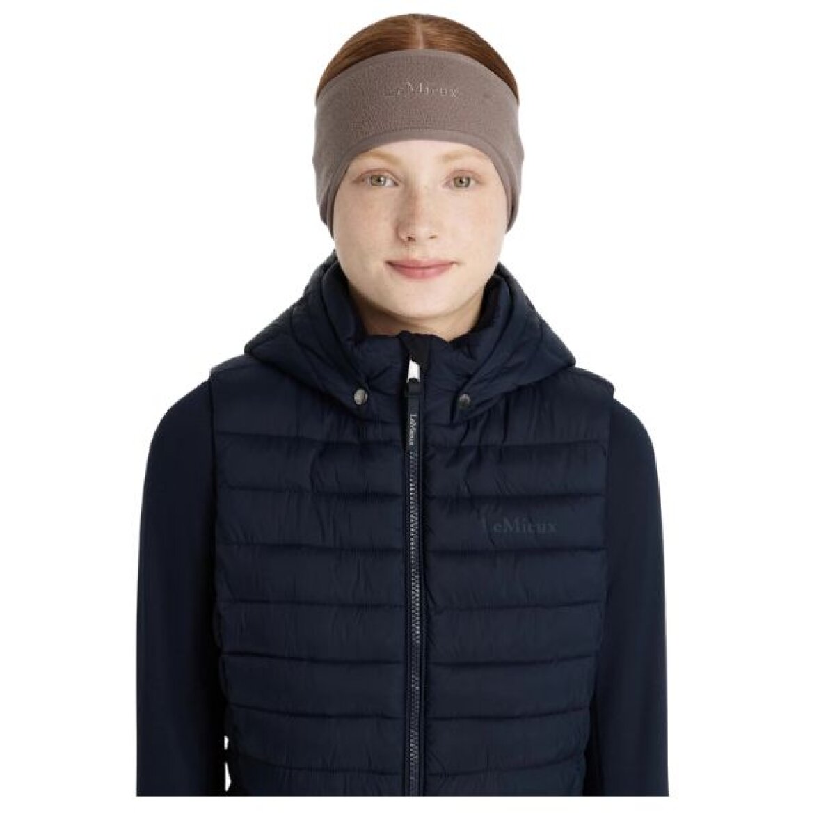 Fleece ørevarmer fra LeMieux. Broderet LeMieux-logo foran og et smart hul bag på til rytterens hestehale.
