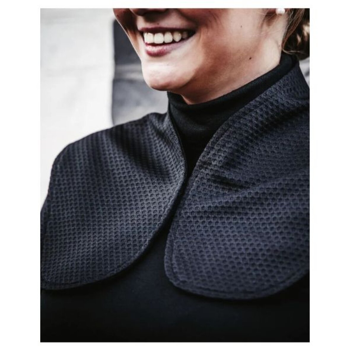 Nakkevarmer fra Back On Track, som kan hjælpe til at lindre smerter i nakke og skulder. Fremstillet i et let og tyndt materiale, der gør at den er åndbar og ikke varm at have på, hvilket kan være en fordel, hvis der er varmt, men man stadig har behov for effekten fra Back On Track. Indersiden af nakkevarmeren har Welltex-teknologi, der genspejler kroppens naturlige varmestråler og dermed giver en infrarød behandling af området. Det sætter gang i blodcirkulationen og kan virke smertelindrende ved eksempelvis piskesmæld og nakkespændinger. Brug gerne nakkevarmeren helt ind på huden, da det giver den bedste effekt fra produktet. Den er tynd og diskret at have på under tøjet, så den kan bruges i løbet af dagen.