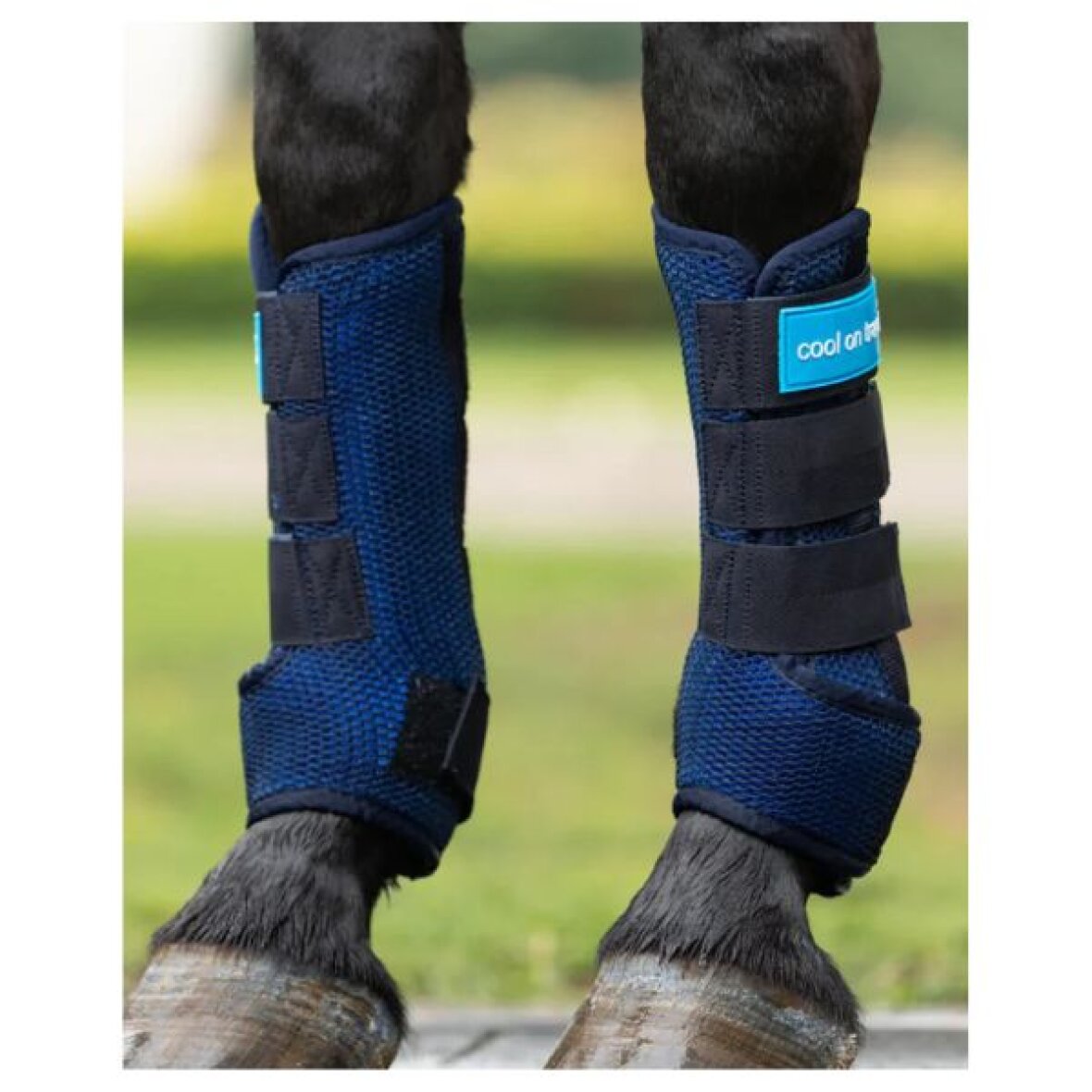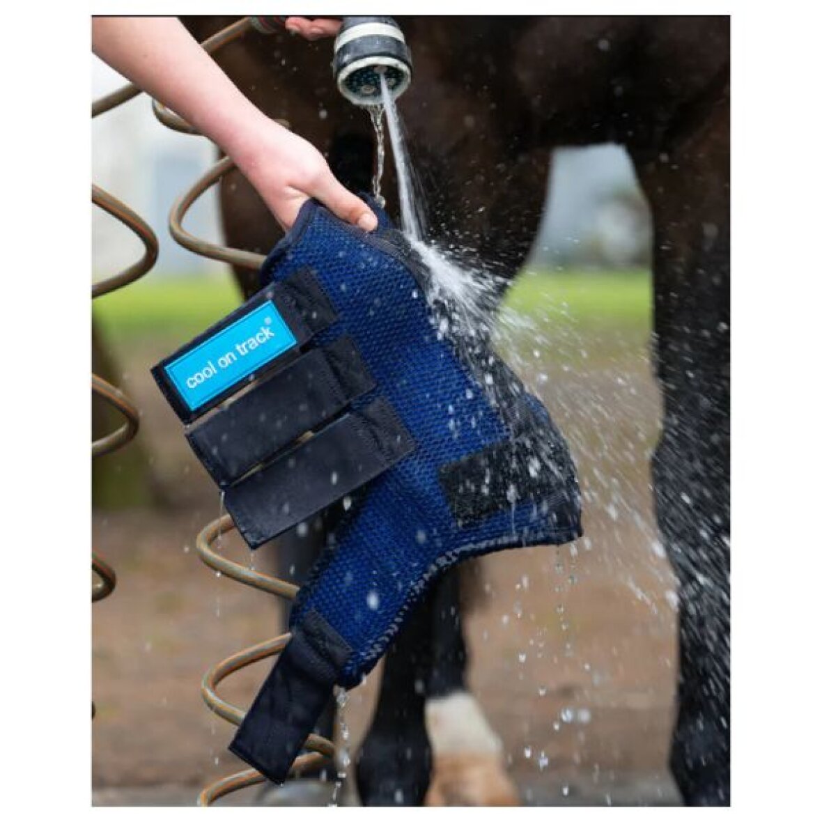 Disse Cool on Track™ Quick Wraps fra Back On Track er en praktisk og effektiv løsning til dig, der ønsker at afkøle din hests ben efter træning uden brug af fryser eller kemikalier. Disse quick wraps er designet til at lægge sig tæt omkring hestens ben og skabe en kølende effekt, som hjælper med at forebygge overophedning og belastningsskader på sener og led. Ved hjælp af en naturlig fordampningsproces kan quick wraps sænke temperaturen i vævet med op til 6 °C. Det kan reducere risikoen for inflammation, hævelser og ømhed efter hårdt arbejde. Ydersiden af wrapsene består af et slidstærkt mesh-materiale med store masker, der sikrer optimal luftcirkulation og effektiv fordampning. Det robuste design betyder, at wrapsene bevarer formen og er lette at håndtere. De lukkes sikkert med brede velcrobånd, så de bliver siddende under brug.