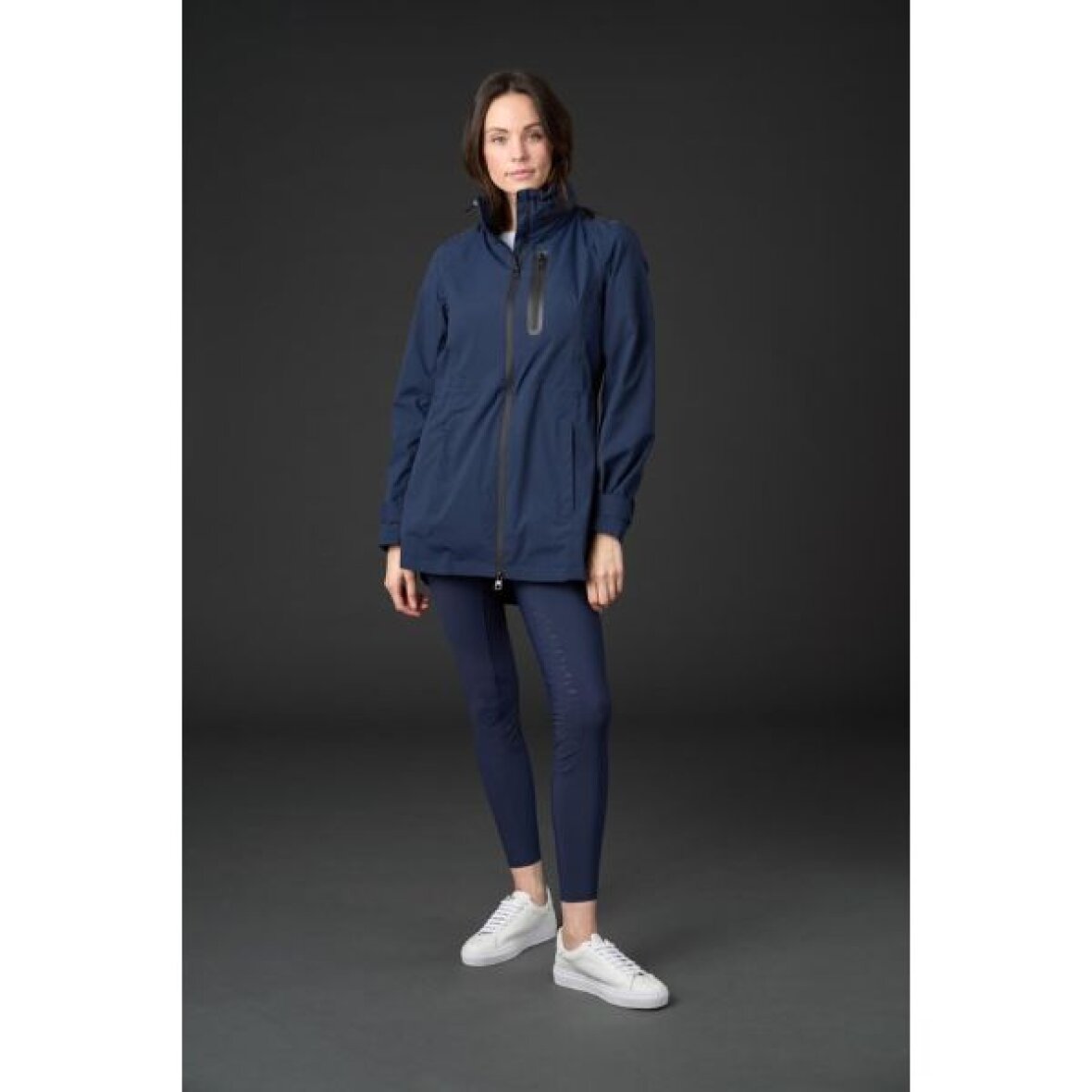 Denne ridejakke fra Catago er den perfekte overgangsjakke. Ridejakken har tapede sømme og er vandtæt (10.000 MM/3.000 MVP). Jakkens halvmatte stof og gummifinishdetaljerne på lynlåsene giver et sporty touch til et klassisk design. En 2-vejs lynlås med den høje slids bagpå og elastisk linning giver let bevægelighed og skaber en smuk silhuet. Den ventilerende rygslids åbnes op til taljen og forhindres i at flagre af de magneter, der er placeret i sømmen, som tilpasser sig til kroppen. De justerbare ærmeafslutninger er sikret med trykknaplukninger på en bred strop. En hætte i kraven er skjult i en slank, strømlinet lynlåspose, som kan bruges når det er nødvendigt.