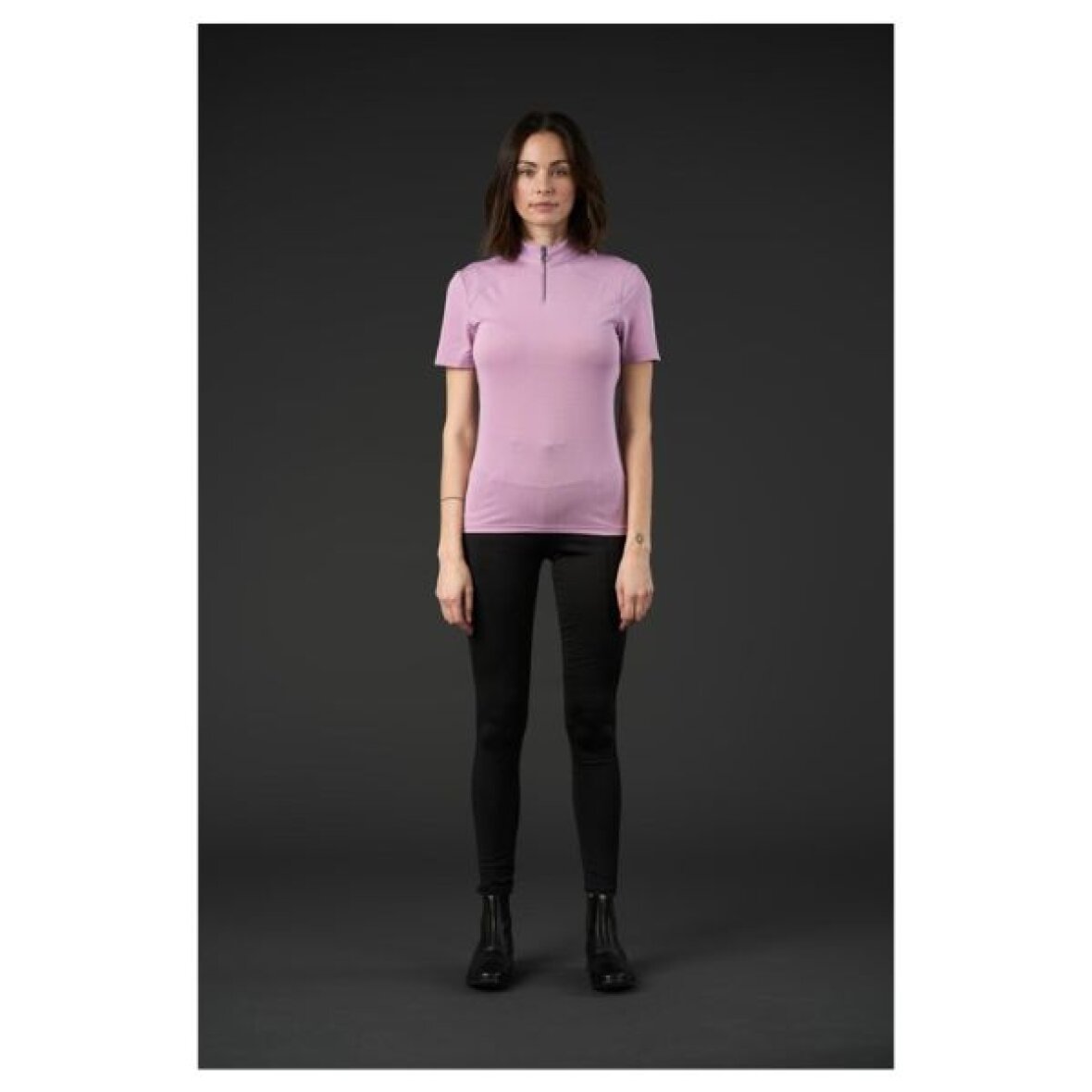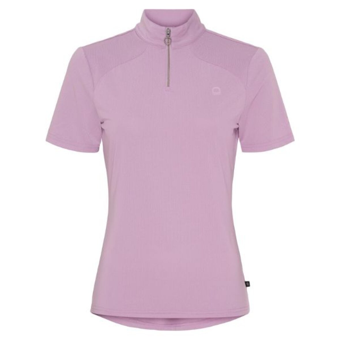 Blød og let t-shirt fra Equipage med korte ærmer. T-shirten har en lille ståkrave med en skinnende, metallisk lynlås og en dekorativ rund metal-zipper. Fremstillet i materiale, der har en allover nålestruktur kaldet butterfly mesh. Materialeeffekten giver ikke kun et iøjnefaldende udtryk, men sikrer også god ventilation på varme sommerdage.