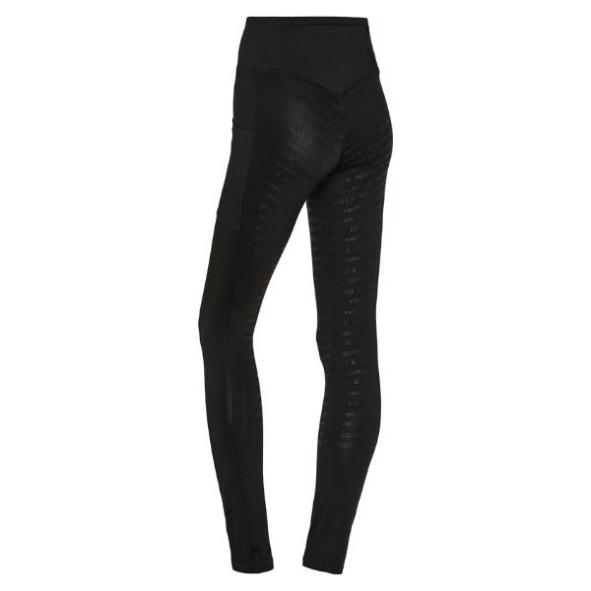 Ridetights med fullgrip fra Equipage. Den høje talje yder god støtte og har et tone-i-tone glitter logoprint bag på linningen, som tilfører et elegant og feminint touch. Rightsene er udstyret med fullgrip anti-slip silikone, som forbedrer rytterens greb i sadlen under ridning. På højre side finder du en praktisk og rummelig lomme, der nemt har plads til din telefon, småting eller masser af godbidder til hesten. Det bløde og hurtigttørrende 4-vejs stretch materiale sikrer optimal bevægelsesfrihed og høj komfort.