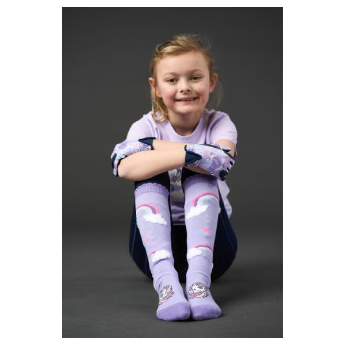 Ridestrømper fra Equipage med det sødeste print og bølgekant i kontrastfarve. Høj elasticitet fra rib til tå, som effektivt beskytter barnets fødder og ben. Den meget flade tå-sømme er behagelig og skånsom mod barnets hud.