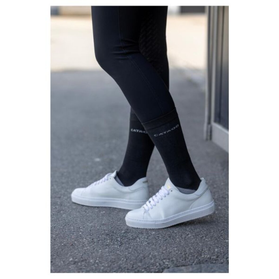 Klassisk stævneridestrømpe fra Catago med tyndt skaft af blød nylon. Foden er lavet i en blød bomuldsblanding, der gør strømperne mere holdbare og komfortable.