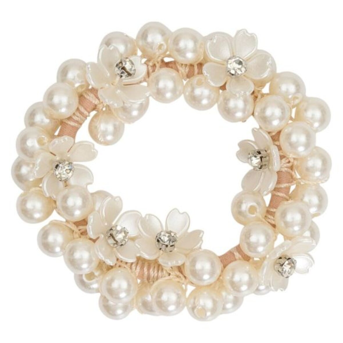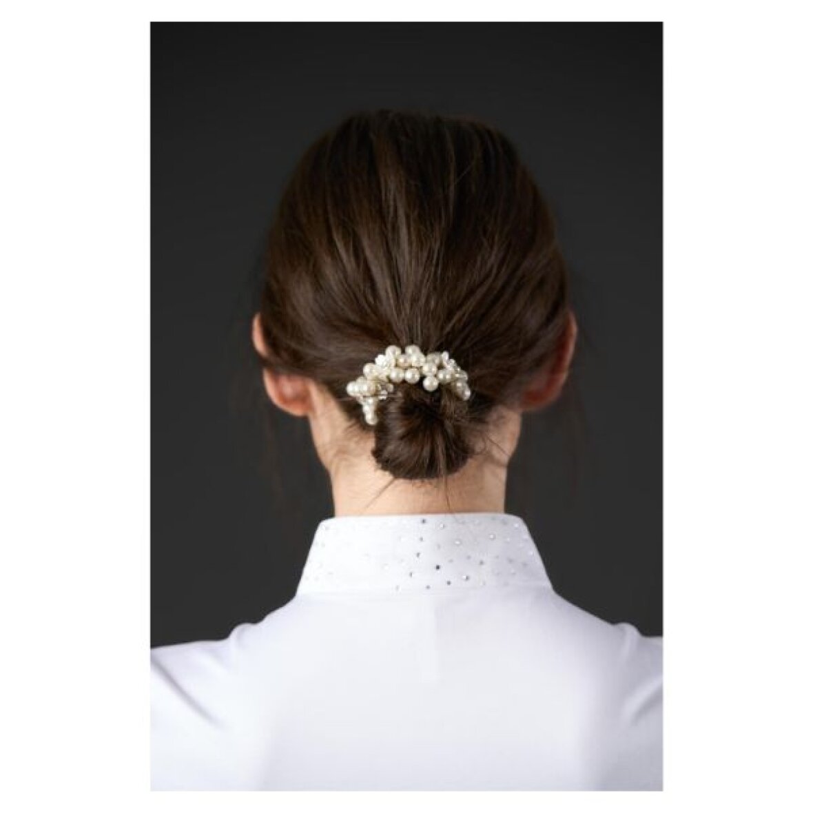 Elegant hårpynt fra Equipage med perler, blomster og palietter på siden. Holder håret på plads på en dekorativ og elegant måde.