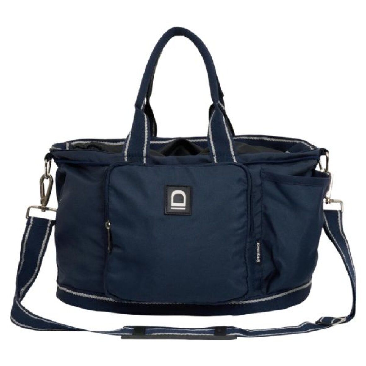 Praktisk og holdbar strigletaske fra Equipage. Denne strigletaske er med 6 udvendige lommer, som passer til godbidder og plejeprodukter. 1 stort rum til diverse strigler og børster, som lukkes med nylon og snøre. Strigletasken er med 2 robuste håndtag og har aftagelig skuderrem.