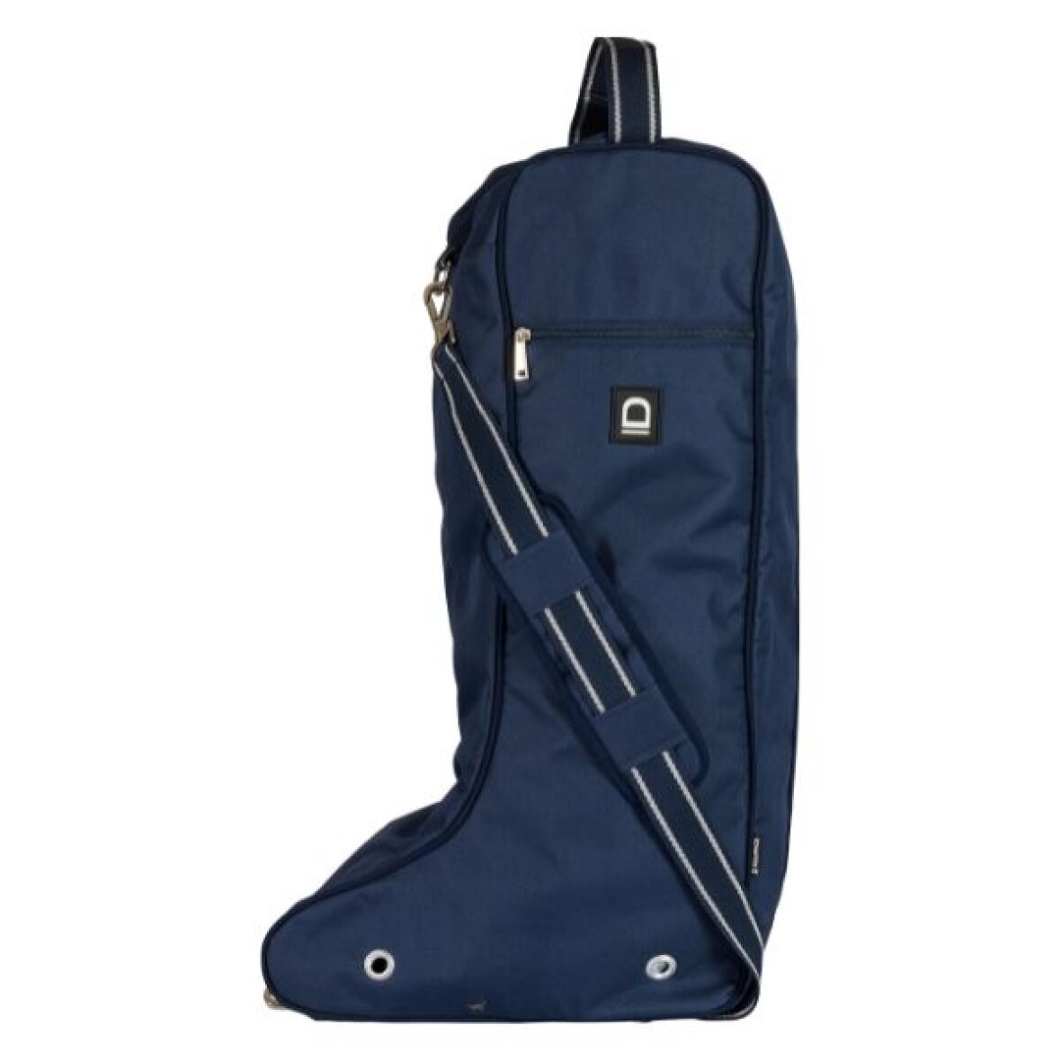 Støvletaske fra Equipage med to separate ''inderrum'' for at støvlerne ikke skrammer hinanden inden i tasken. Støvletasken har et håndtag og en justerbar skulderstrop for nem transport. Smarte rummelige sidelommer til rytterens småting såsom handsker, sporer eller andet.