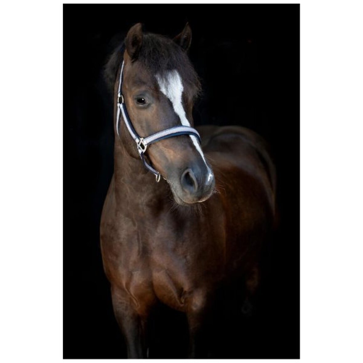 Flot grime fra HorseGuard med sølvglitter og striber. For optimal komfort er både næsebånd og nakkestykke polstret med blød neopren, der mindsker tryk og sikrer en behagelig pasform. Grimen kan justeres ved både nakkestykke og næsebånd, så den nemt tilpasses hestens hoved. De skinnende sølvspænder fuldender det stilrene look.