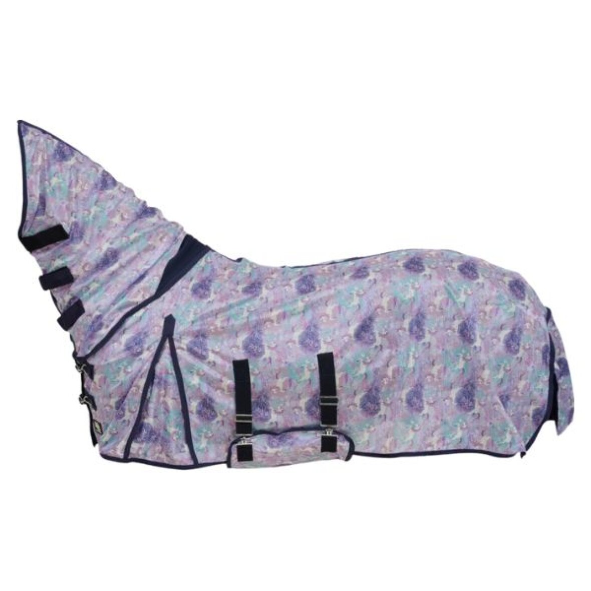 Allover-printet insektdækken fra HorseGuard, der giver effektiv beskyttelse mod insekter. Dækkenet har fuld hals med lycra-indlæg og polyesterforing på hals, bryst og hale for ekstra komfort og bevægelsesfrihed. Med sidesplit, mave- og haleafdækning sikres optimal pasform og dækning, mens den dobbelte frontlukning med velcro og quick release gør det nemt at tage på og af. Elastiske benstropper holder dækkenet sikkert på plads. Fremstillet i 100 % UV-behandlet polyester materiale.