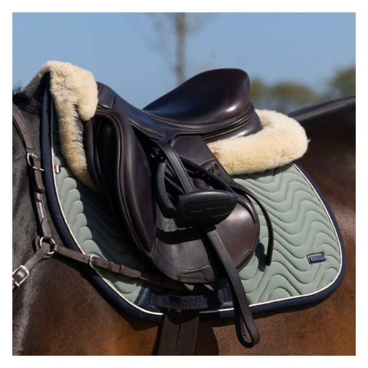Elegant springunderlag fra Kingsland fremstillet i materiale, der er udviklet med en kølende effekt, hvor en fugtaktiveret teknologi absorberer og leder varme væk fra hestens krop. Det hjælper med at regulere temperaturen og sikrer optimal komfort. Den åndbare 3D mesh-ryg giver øget luftcirkulation langs ryg og manke, så varmen kan slippe ud og trykopbygning reduceres. Det bidrager til en mere behagelig oplevelse for hesten og en bedre pasform under sadlen. Underlaget er desuden udstyret med en slidstærk PU-forstærkning, for at beskytte mod friktion og slid fra sadlen, hvilket forlænger produktets levetid. Underlaget afsluttes med en let kontrast satin-piping, der giver et eksklusivt udtryk samt et diskret metalmærke med præget logo.