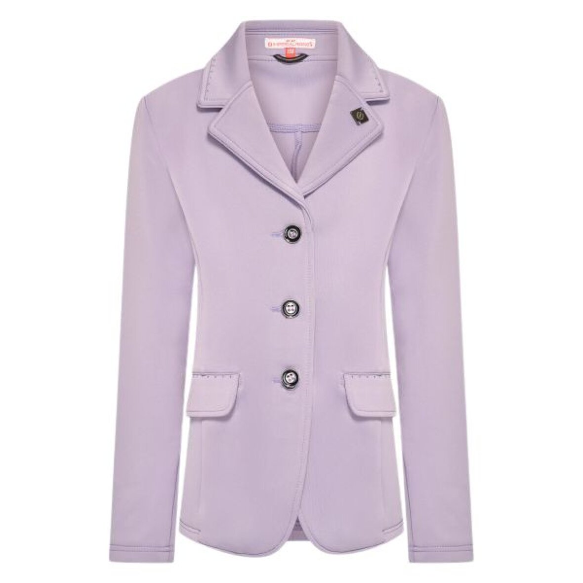 Stævnejakke til børn fra Imperial Riding med funklende rhinsten på kraven, lommeklapperne og bagpå. Stævnejakken har skrå lommer med klapper samt en klassisk krave og revers med tre elegante knapper foran, som tilsammen skaber et flot stævneudtryk. Jakken er uden foer, hvilket gør den let og behagelig at have på, samtidig med at den giver god bevægelsesfrihed i sadlen. På reversen sidder desuden en diskret metalplade med Imperial Riding-logo, som fuldender det eksklusive look.