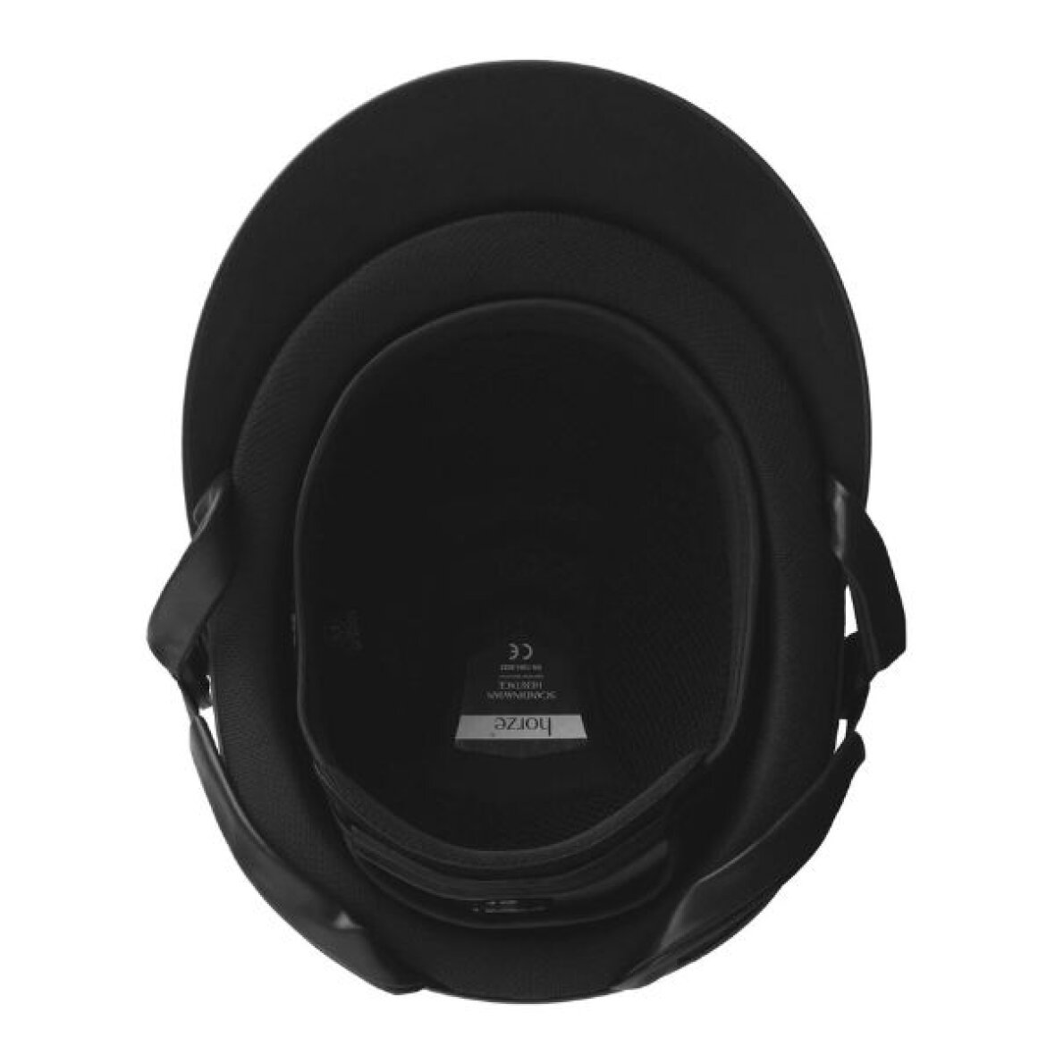 Elegant mat ridehjelm fra Horze. Ridehjelmen har ventilationsåbninger, som sikrer optimal luftgennemstrømning og hjælper med at holde hovedet køligt, selv på længere rideture. Den justerbare drejespænde-lukning gør det let at tilpasse pasformen præcist efter dit hoved, mens det bløde memory foam-foer former sig naturligt for maksimal komfort. Lineren kan desuden tages ud og vaskes, så hjelmen altid føles frisk. Den fleksible, brede skygge øger sikkerheden yderligere og giver ekstra beskyttelse mod sol og vejr.