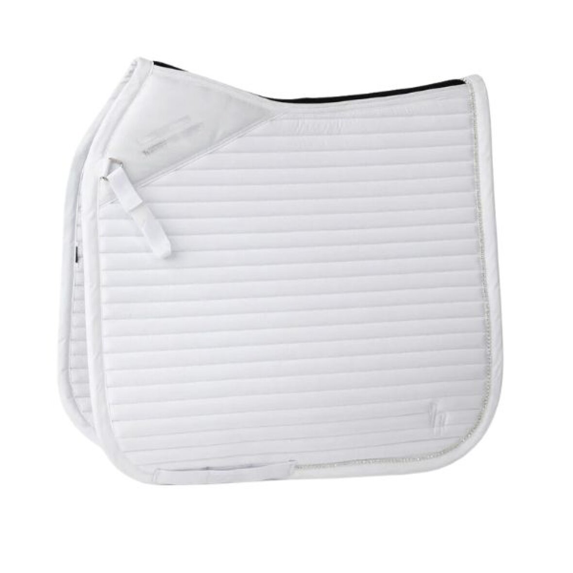 Klassisk dressur underlag fra Horze. Underlaget er anatomisk formet, hvilket sikrer en god pasform, mens den bløde polstring giver optimal komfort for hesten. Ved mankeområdet er der placeret et silikonetryk, som hjælper med at holde underlaget stabilt under sadlen. Underlaget afsluttes med et kantbånd med diskrete krystaldetaljer og en flot quiltning.