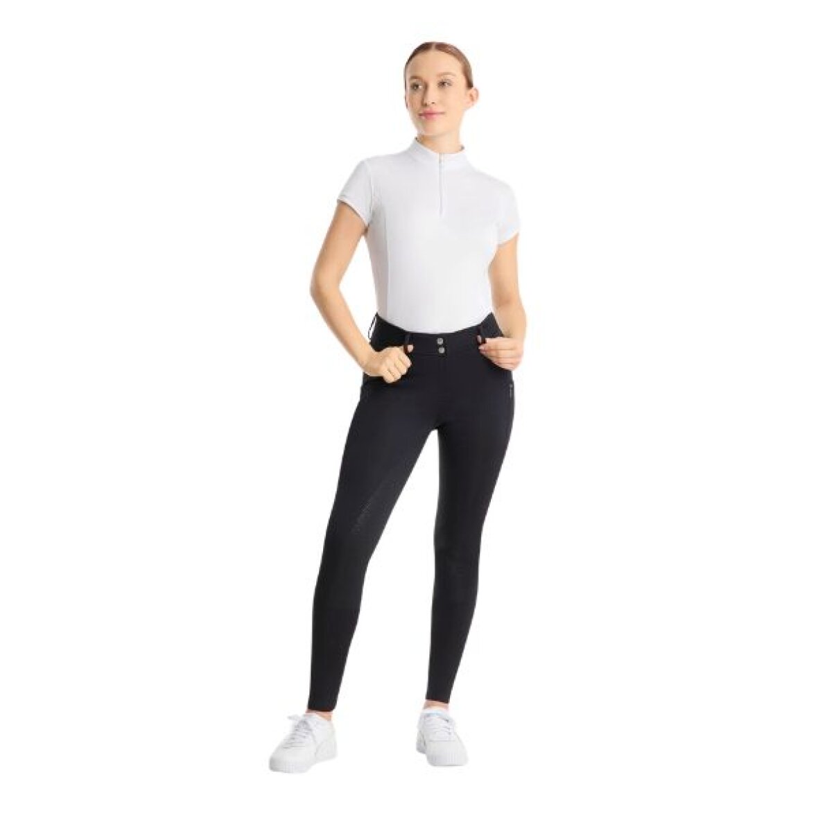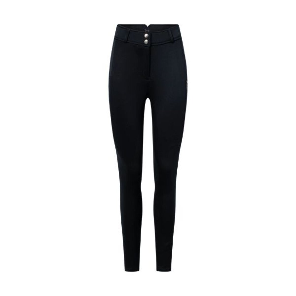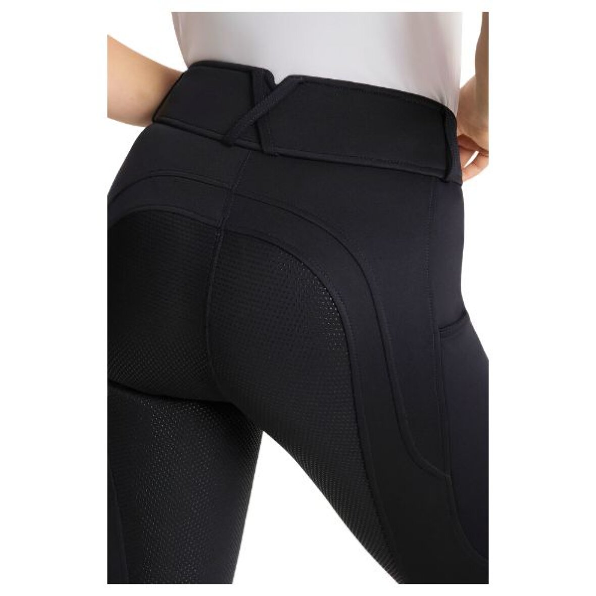 Ridebukser fra Horze med fullgrip. Den brede linning med indvendigt elastikbånd giver en behagelig følelse omkring taljen, mens det åndbare materiale sikrer komfort under hele rideturen. De praktiske mobillommer på begge lår giver plads til mobiltelefon eller andre småting. Ridebukserne er desuden udstyret med lynlås, to trykknapper med logo og bæltestropper.