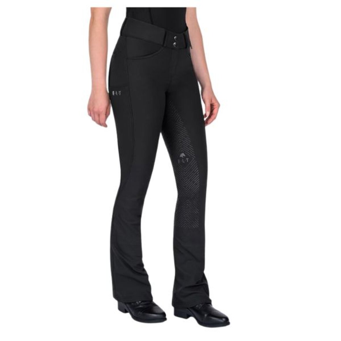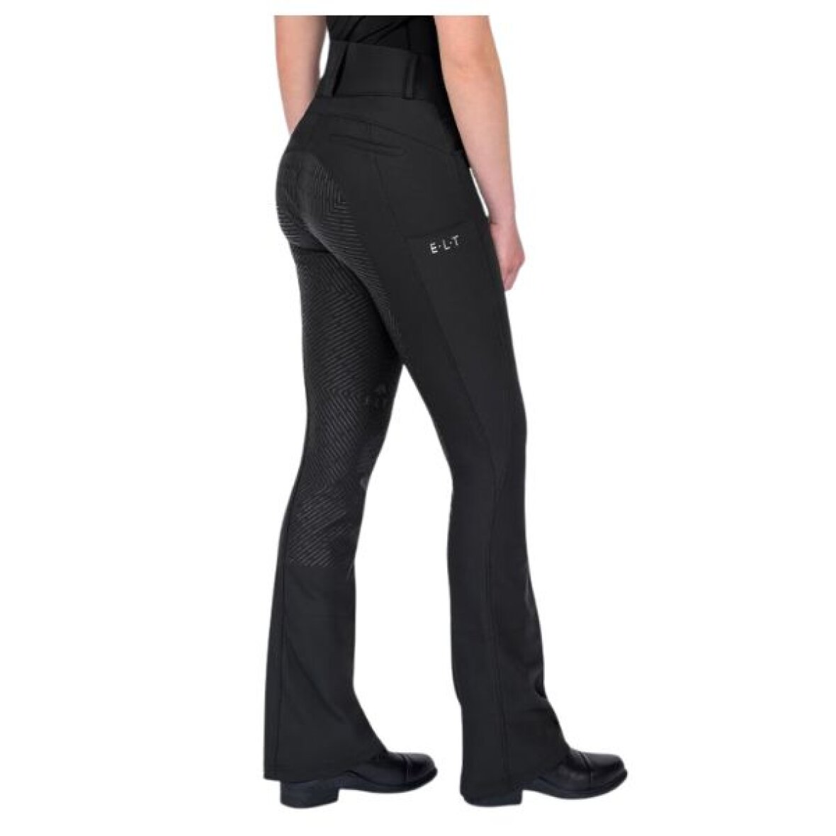 Klassiske jodphur ridebukser med fullgrip fra ELT. Ridebukserne har en formsyet, høj talje, der giver en flot pasform og god støtte under ridning. Materialet er åndbart, bi-elastisk og vandafvisende, hvilket sikrer maksimal bevægelsesfrihed og komfort i al slags vejr. Derudover indeholder stoffet genanvendte fibre, så du får et mere bæredygtigt valg uden at gå på kompromis med kvaliteten. I slutningen af benet finder du en elastik, der giver en tætsiddende og behagelig pasform under støvlerne. Bukserne har bæltestropper samt to skrålommer foran med dekorativ satinkant, som tilfører et elegant touch. Bagpå finder du to lommer samt et sølvfarvet E·L·T-print på den bagerste bæltestrop. En praktisk mobillomme på højre side med logo gør det nemt at have telefonen eller andre småting sikkert ved hånden.