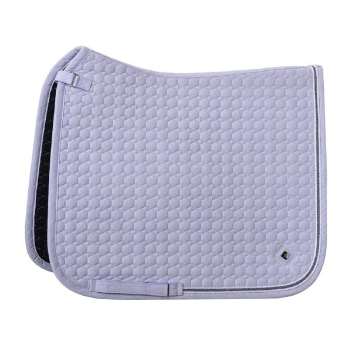 Elegant dressur underlag fra Imperial Riding. Underlagets dobbelte gjordstrop sikrer, at underlaget ligger stabilt under ridning og hjælper med at holde det korrekt placeret under sadlen. Underlaget har et elegant og eksklusivt udtryk, som fremhæves af en kant af perlepiping. Langs ryggen er et broderet logo, der tilfører en stilren detalje, mens et elegant metallogo fuldender det eksklusive design.