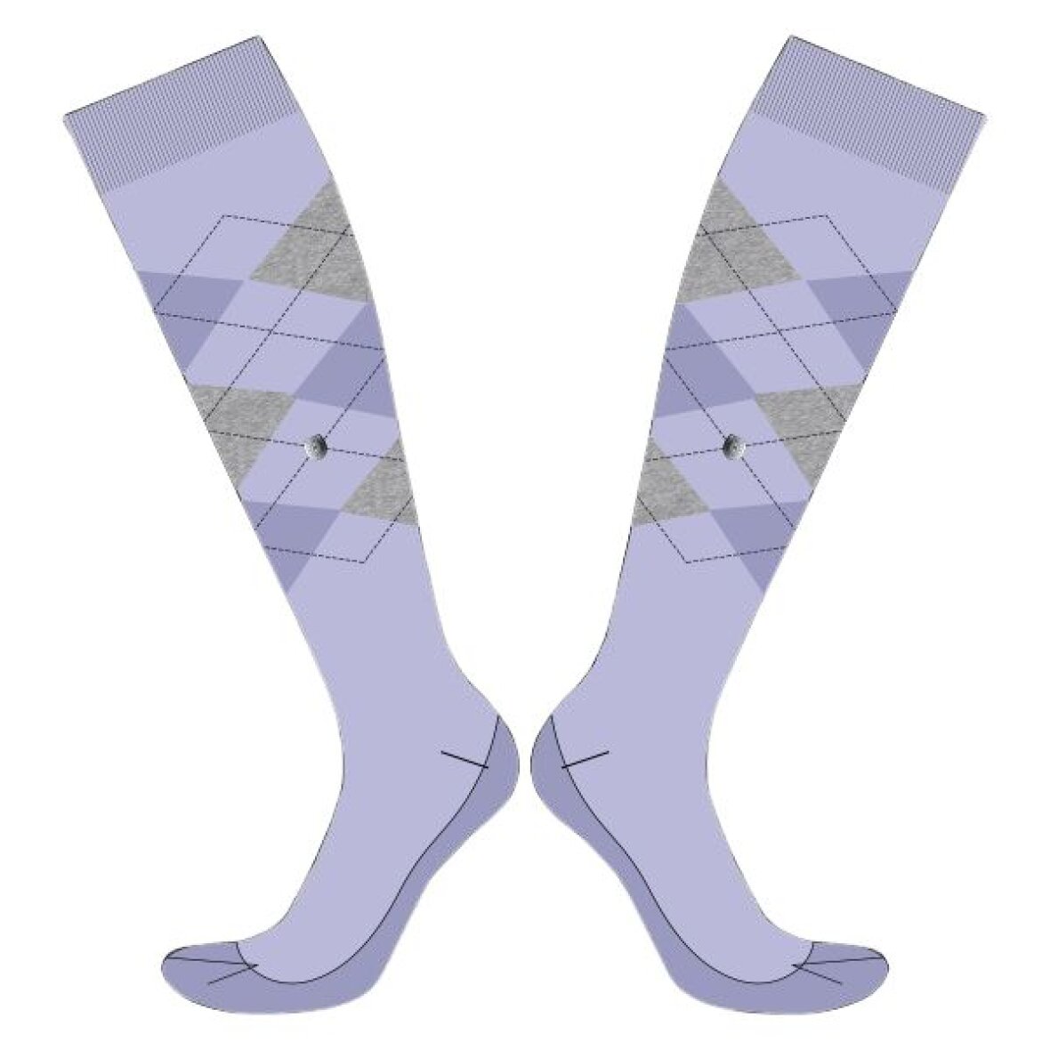 Ridestrømper fra Imperial Riding med et klassisk argyle-mønster og et fint metallogo, som tilfører et ekstra strejf af elegance.