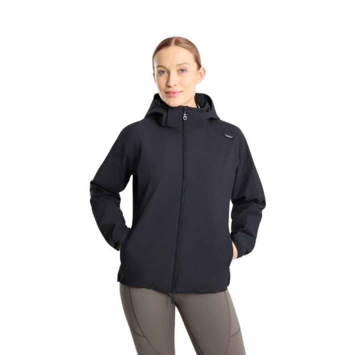 Klubjakke fra Horze, som er fremstillet i et mat materiale og har en vandtæt og åndbar kvalitet på 3000 mm / 3000 mvp, hvilket gør den ideel til skiftende vejrforhold. De tapede sømme og TPU-belægningen hjælper med at holde regn og vind ude. Indvendigt er jakken foret med blød mesh i kroppen, som giver god ventilation og en behagelig følelse mod huden, mens ærmeforet i polyester gør den nem at tage af og på. Jakken har en praktisk indpakkelig hætte, der hurtigt kan gemmes væk, når den ikke er i brug. Foran lukkes jakken med en 2-vejs lynlås, som giver ekstra fleksibilitet og i kanten finder du en justerbar snor med stoppere, så pasformen nemt kan tilpasses. Jakken er desuden udstyret med lommer med lynlås, så dine småting opbevares sikkert. Et diskret tone-i-tone print på venstre ærme fuldender det stilrene look.